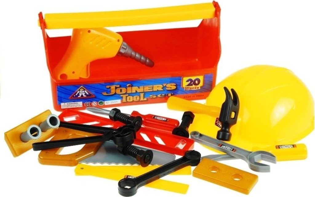 Prezentovaná sada obsahuje vše, co malý kutil potřebuje k přesnému napodobení svého tatínka - šroubování šroubů, vrtání, řezání a klepání kladivem.