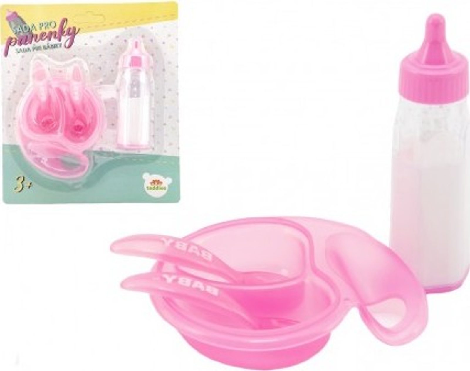 Má Tvá panenka hlad? Dej jí napít z lahvičky s mlékem nebo připrav jídlo do mističky. Sada obsahuje lahev s mlékem, mističku se lžičkou a vidličkou.
