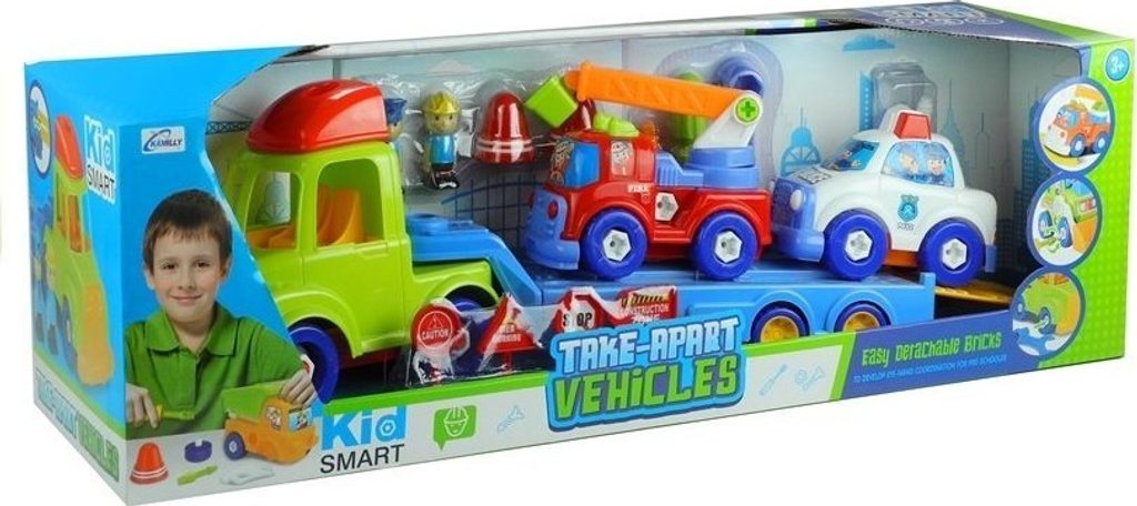 Zde prezentovaná sada se skládá z vozidel - policejních a hasičských. Zajímavostí je také to, že se tato vozidla vyznačují možností odšroubování, což bude jistě fenomenální hračka pro vaše zvídavé dítě. Vůči této veselé, pestrobarevné kolekci nezůstane žádný chlapec lhostejný. Spojení rozvíjející se zábavy s možností montáže a demontáže na dětmi vybrané prvky dělá z této hračky úžasnou zábavu, která dítě zaujme na dlouhé hodiny. Tato hračka bude trefou do černého jak pro samostatného chlapce, který rád konstruuje a manuálně pracuje, tak pro děti, které si raději hrají společně s rodiči nebo staršími sourozenci.