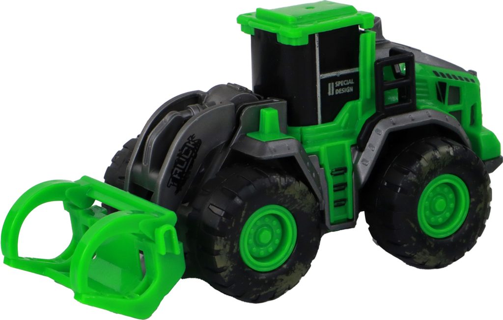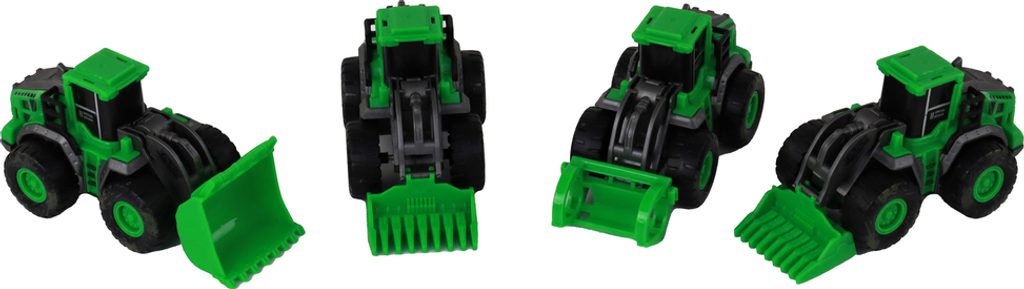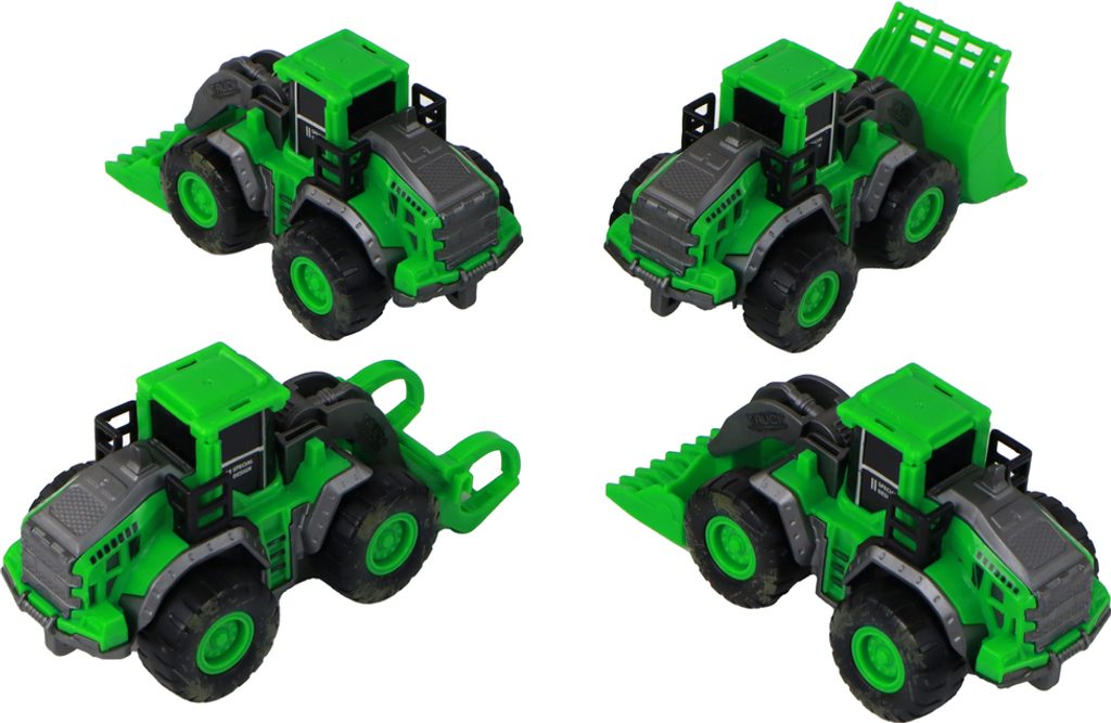 Obsah sady: - traktor s drapákem na dřevo - traktor s lžící - traktor x2 se zařízením na sekání trávy - originální balení