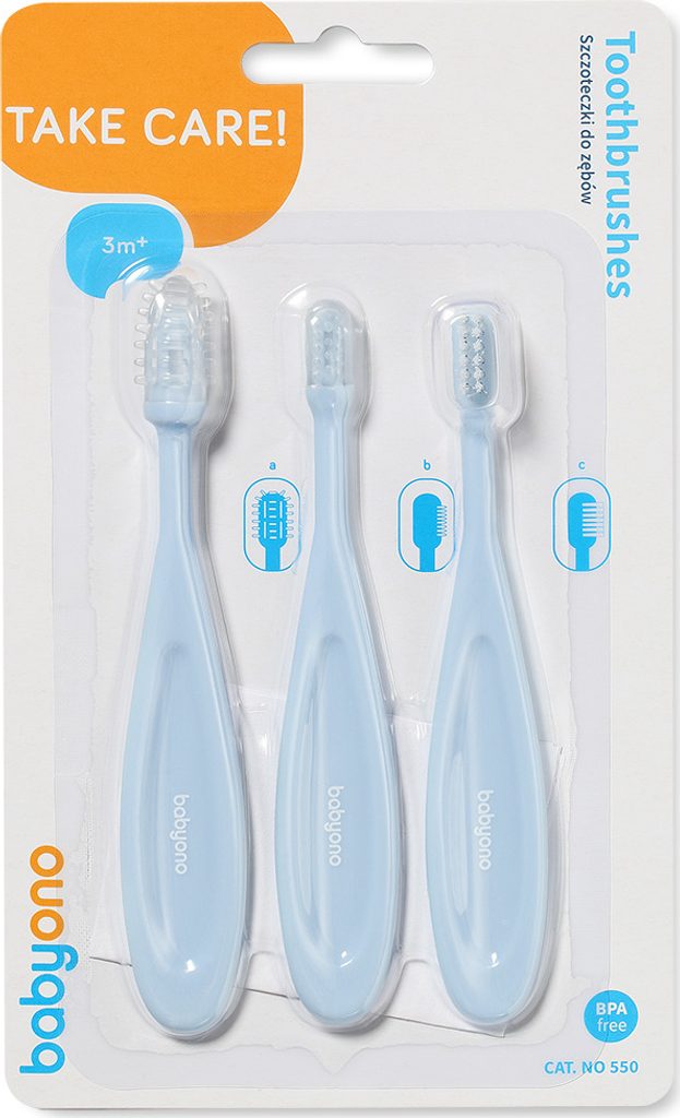 Kartáčky pomáhají udržovat ústní hygienu a učí děti péči o každodenní použití. První kartáček čistí dásně a masíruje je, přináší úlevu v období prořezávání zoubků. Poslední kartáček s měkkými štětinami dítě používá k čištění zubů samo. Kartáčky jsou vyrobeny z hygienických materiálů, neobsahují Bisfenol A.