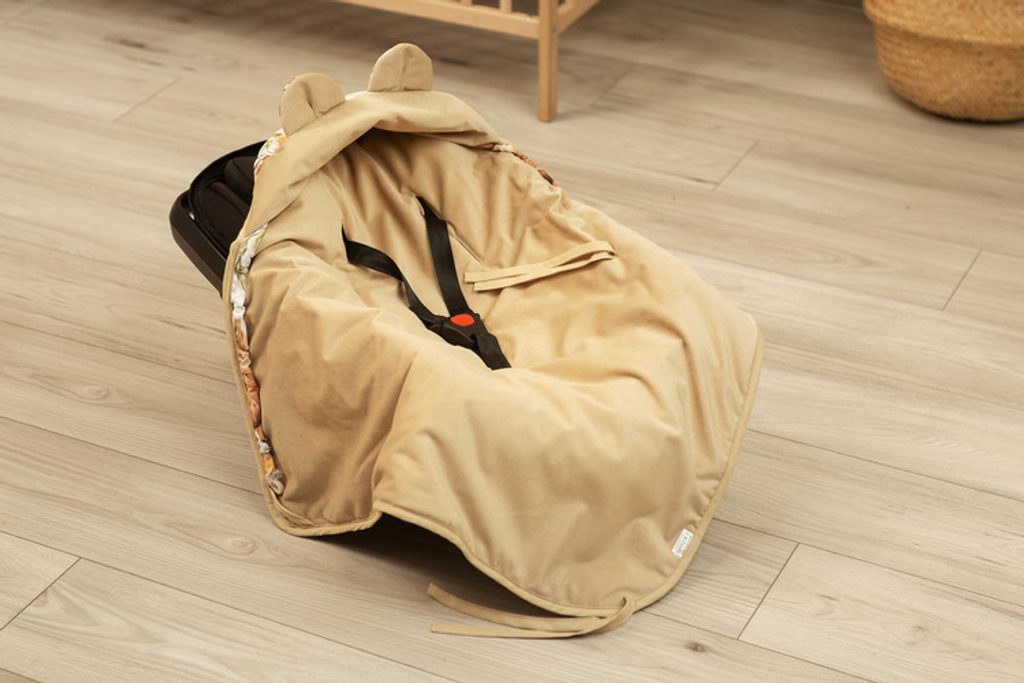 Zavinovačka do autosedačky Velvet byla vytvořena s ohledem na nejmenší děti. Je pohodlná a hřejivá, navíc je velmi praktická. Je alternativou k teplému dětskému oblečení. Díky otvorům pro tříbodové popruhy je velmi funkční - nemusíte rozepínat popruhy, abyste dítě v nosítku odkryli. Zavinovačka má kapuci s roztomilými oušky, která je nastavitelná pomocí šňůrky. Je vyplněna antialergickou vložkou. Uvnitř je měkká sametová látka.