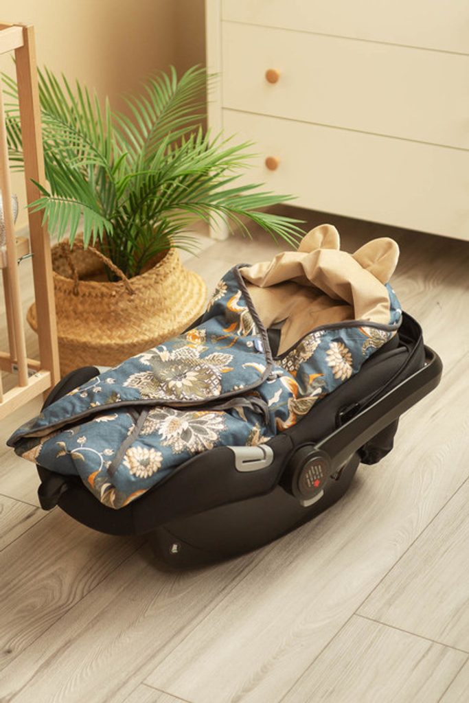 Sametová zavinovačka do autosedačky béžové květy