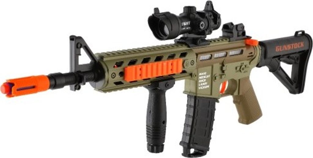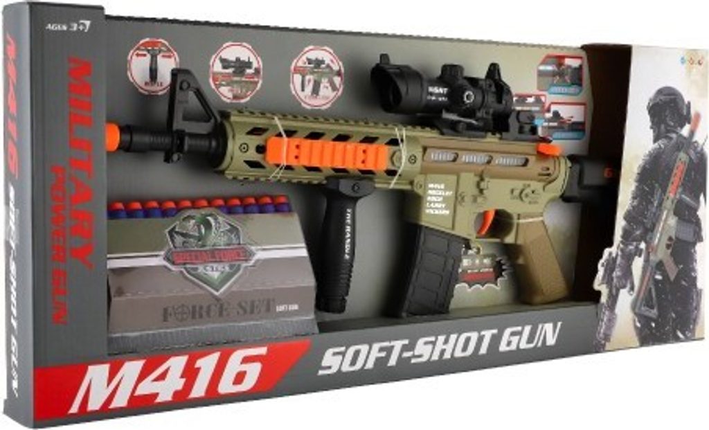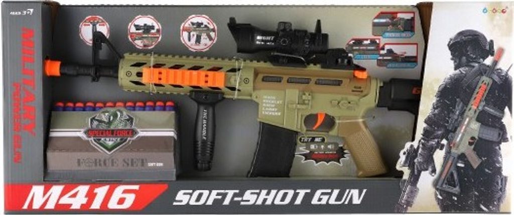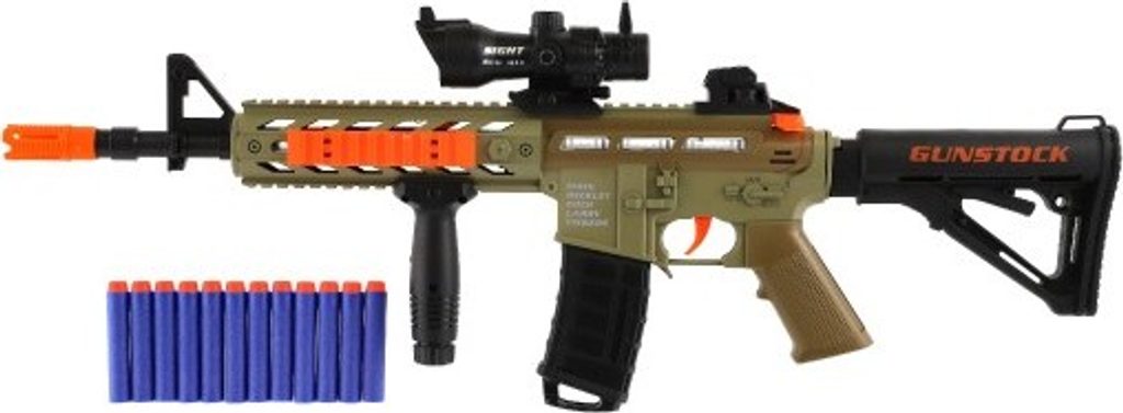 Pistole nesmí chybět ve výbavě žádného malého ochránce! Nabij zbraň a číhej! Tvůj nepřítel nemá šanci! V balení najdeš 12 pěnových nábojů. Samopal má pohyblivý zaměřovač a vibruje. Na baterie 3 x AA, které jsou součástí.