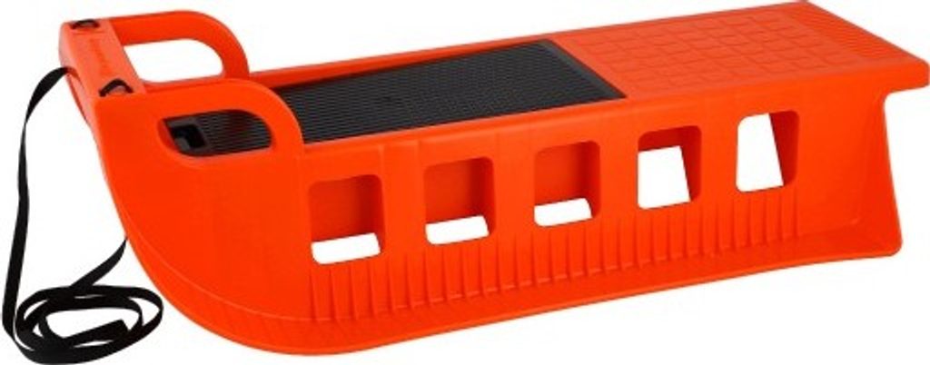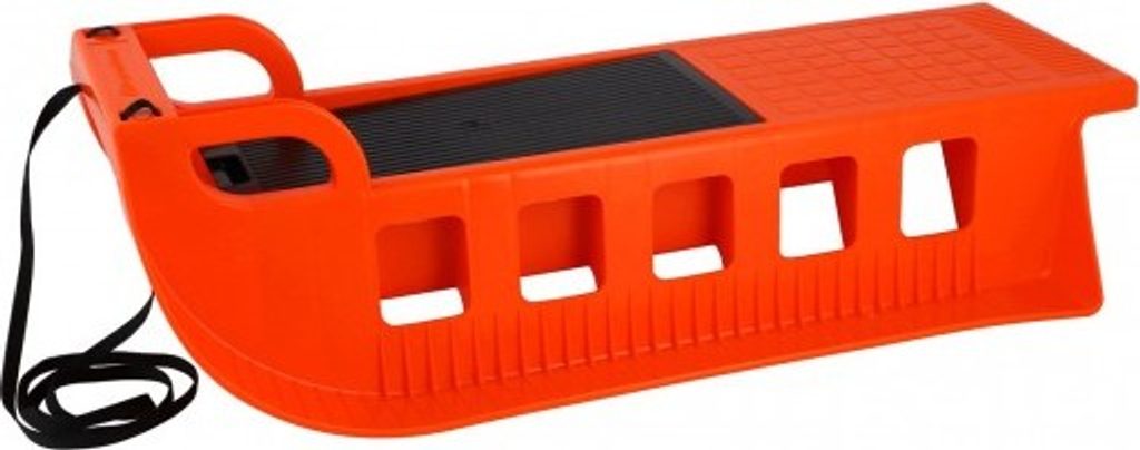 Pevné a lehké plastové sáňky s popruhem pro tahání, madly a úložným prostorem pod sedátkem. Popruh je umístěn v úložném prostoru. Skluznice jsou rozšířené pro opření nohou. Sáně jsou určeny pro rekreační sport. Doporučené maximální zatížení saní je 80 kg.