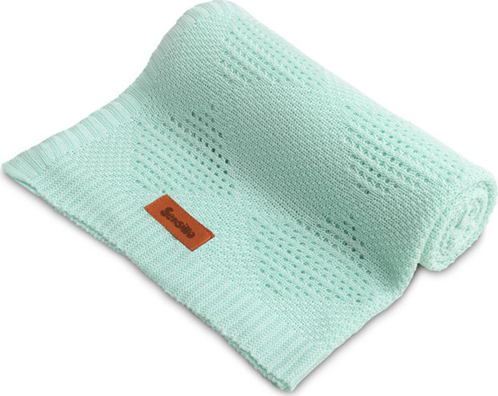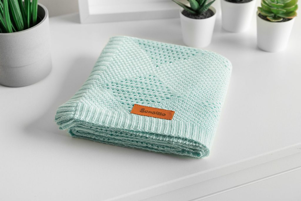 Sensillo Dětská pletená bambusová deka do kočárku 100x80 cm máta