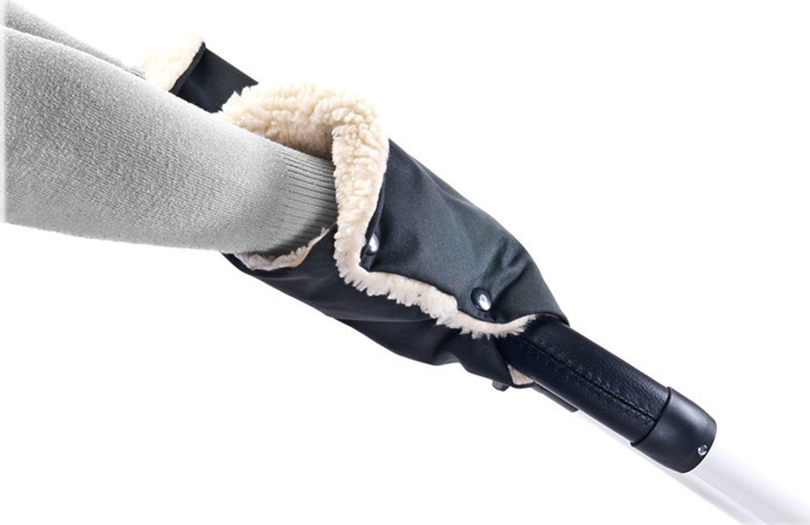 Procházka s kočárkem na podzim a v zimě vystavuje ruce větru, dešti a sněhu. Rukavice / rukávník do kočárku je receptem na tyto nepříjemnosti. Ochrání vaše ruce před nepříznivými povětrnostními podmínkami a usnadní péči o vaše miminko – rukavice již nemusíte nasazovat a sundávat. Objímka se zapíná na patentky na madlech vozíku nebo saní, díky kterým dobře drží svou polohu. Vnější strana je pokryta voděodolným materiálem, zatímco vnitřní vrstva je měkký a hřejivý "beránek".