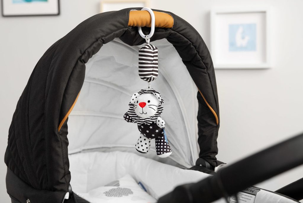 Plyšový přívěsek na kočárek Black & White kravička upoutá pozornost dítěte nejen charakteristickou černobílou barvou, ale také zvonkem příjemným pro ucho. Maskot má univerzální držák, který umožňuje připevnění kdekoli, doma nebo na cestách. Další zábavou pro miminko jsou šustící ouška a pískot ukrytý v bříšku.