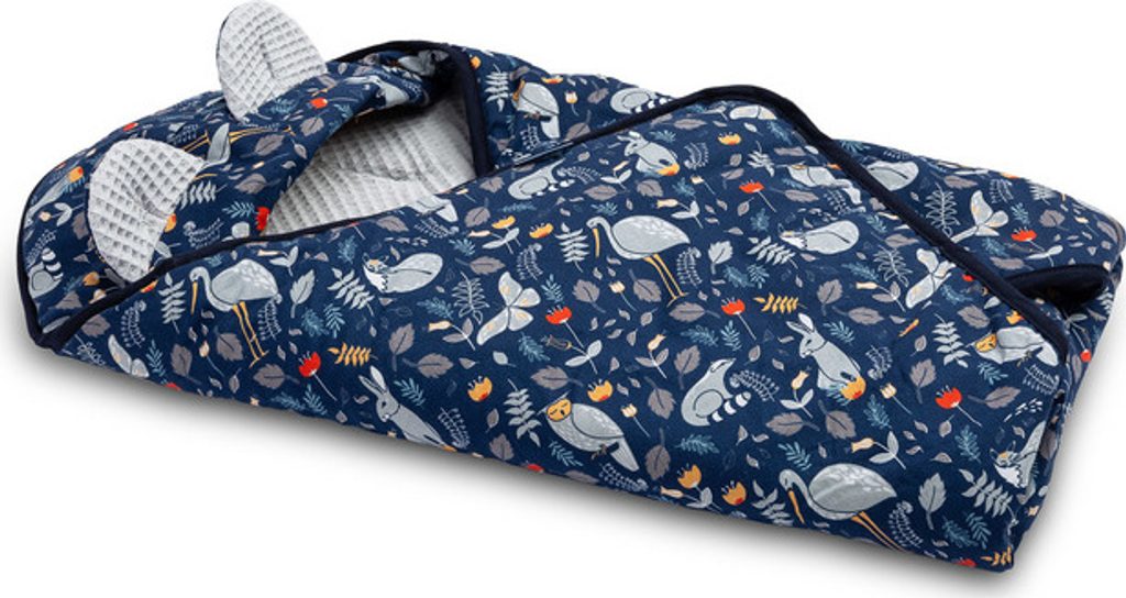 Zavinovačka byla vytvořena s ohledem na nejmenší děti. Je pohodlná a navíc velmi praktická při cestování. Je alternativou teplého dětského oblečení. Díky otvorům pro 3-bodové pásy je velmi funkční - pro odhalení dítěte v nosiči není nutné pásy rozepínat. Zavinovačka má nastavitelnou kapuci s roztomilými oušky. Je vyrobena ze 100% bavlny.