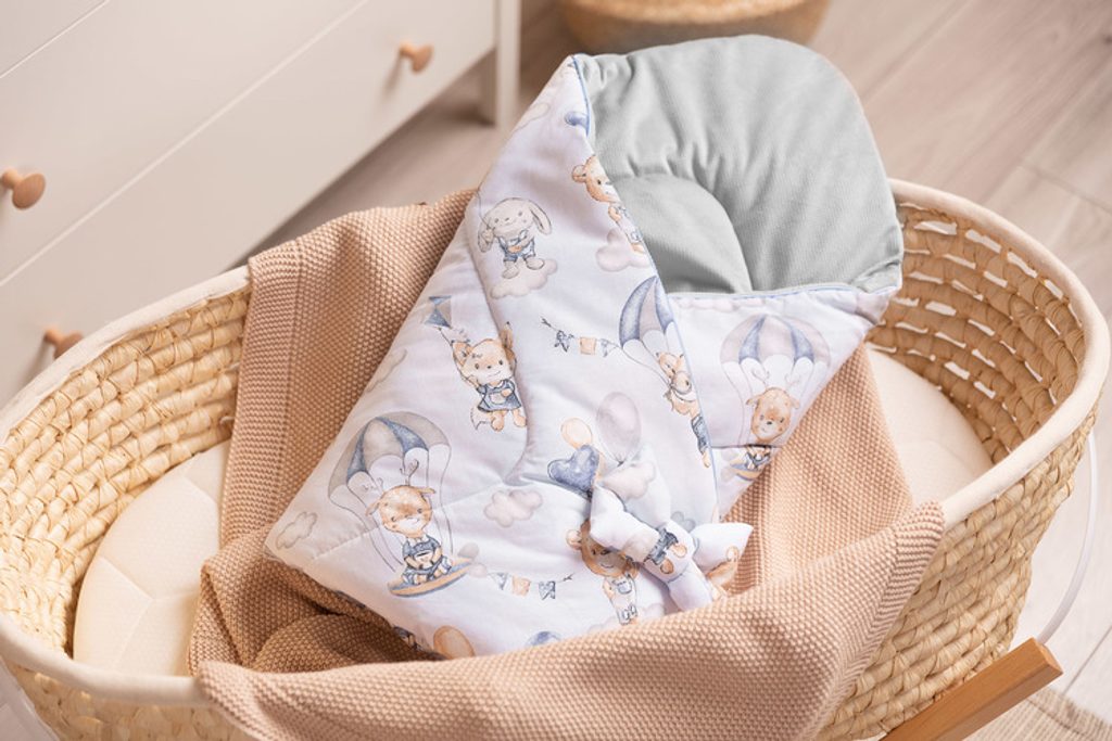 Oboustranná zavinovačka Velvet byla navržena pro novorozence a kojence. Zapínání na suchý zip umožňuje pohodlné držení miminka při krmení a spánku. Po rozložení lze zavinovačku použít jako peřinku do postýlky nebo kočárku. Dá se použít i jako podložka na hraní. Byla vyrobena ze 100% bavlny a jemné, jemné sametové prošívané látky. Výplň kornoutu je nealergenní, nadýchaná silikonová netkaná textilie. Vysoká kvalita zpracování je podtržena estetickou vložkou