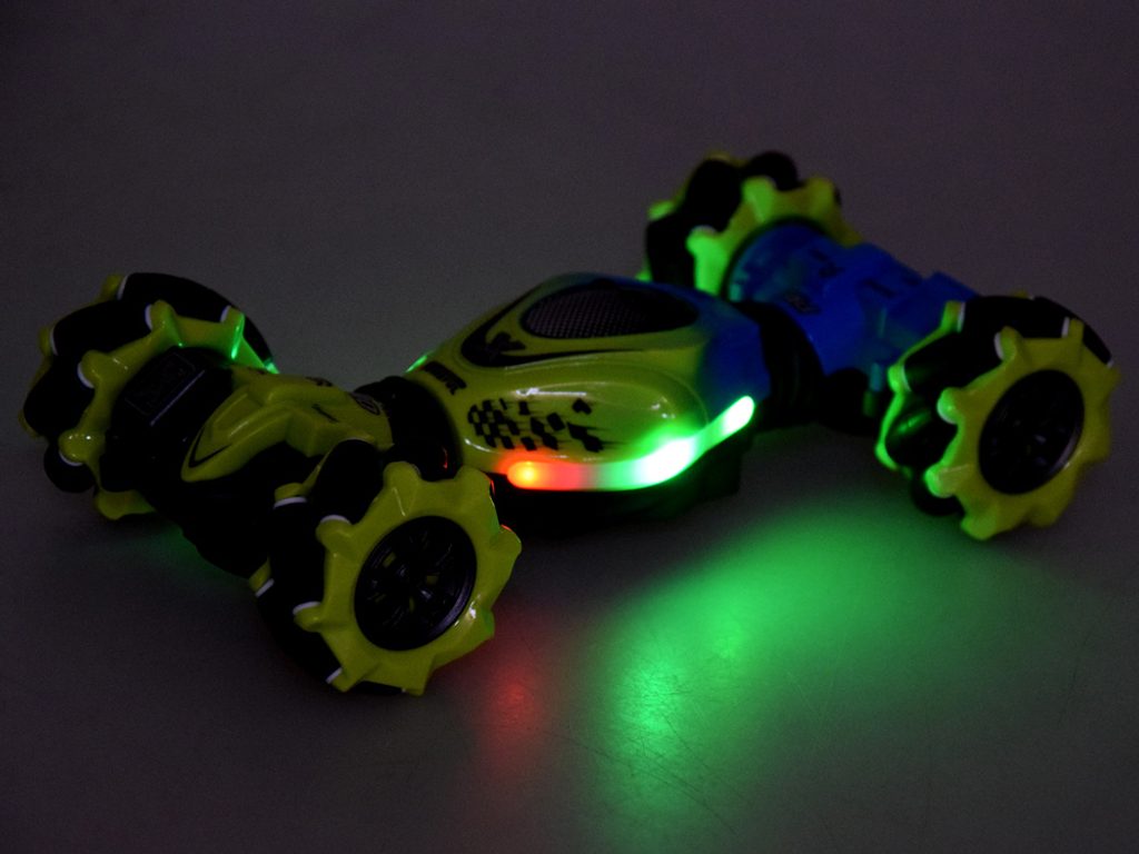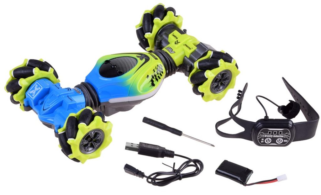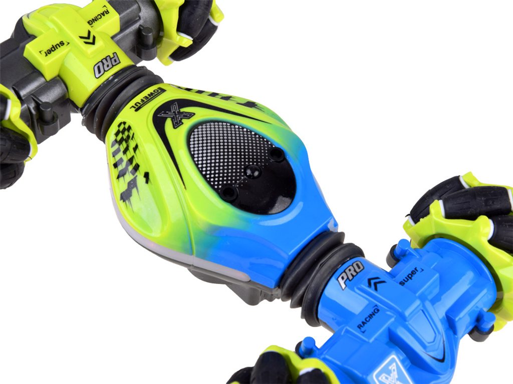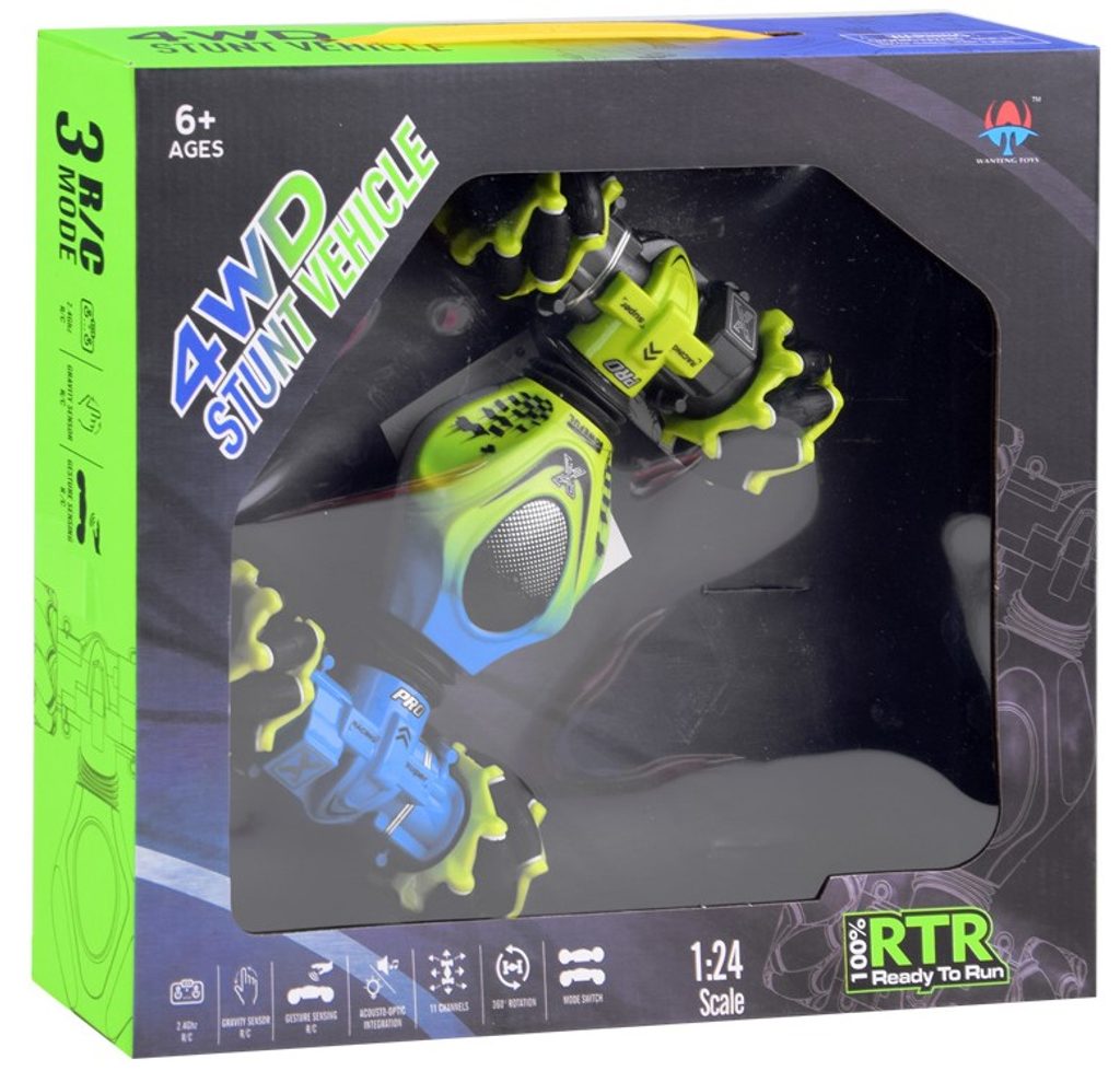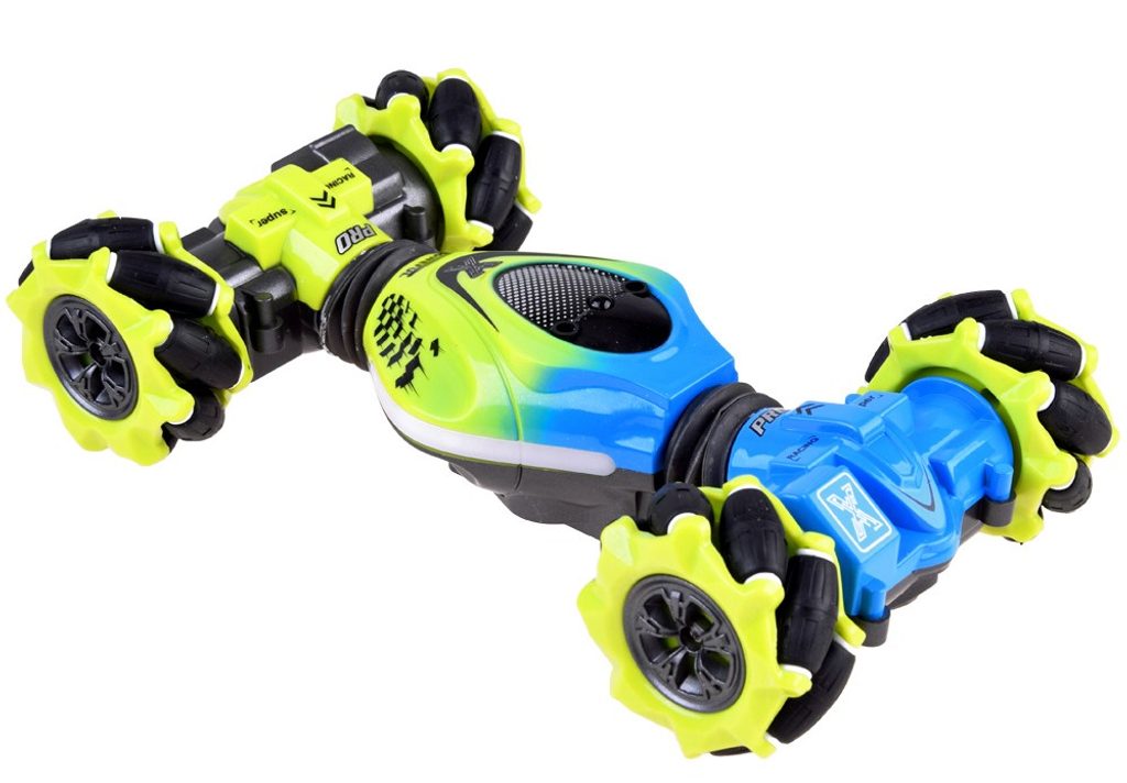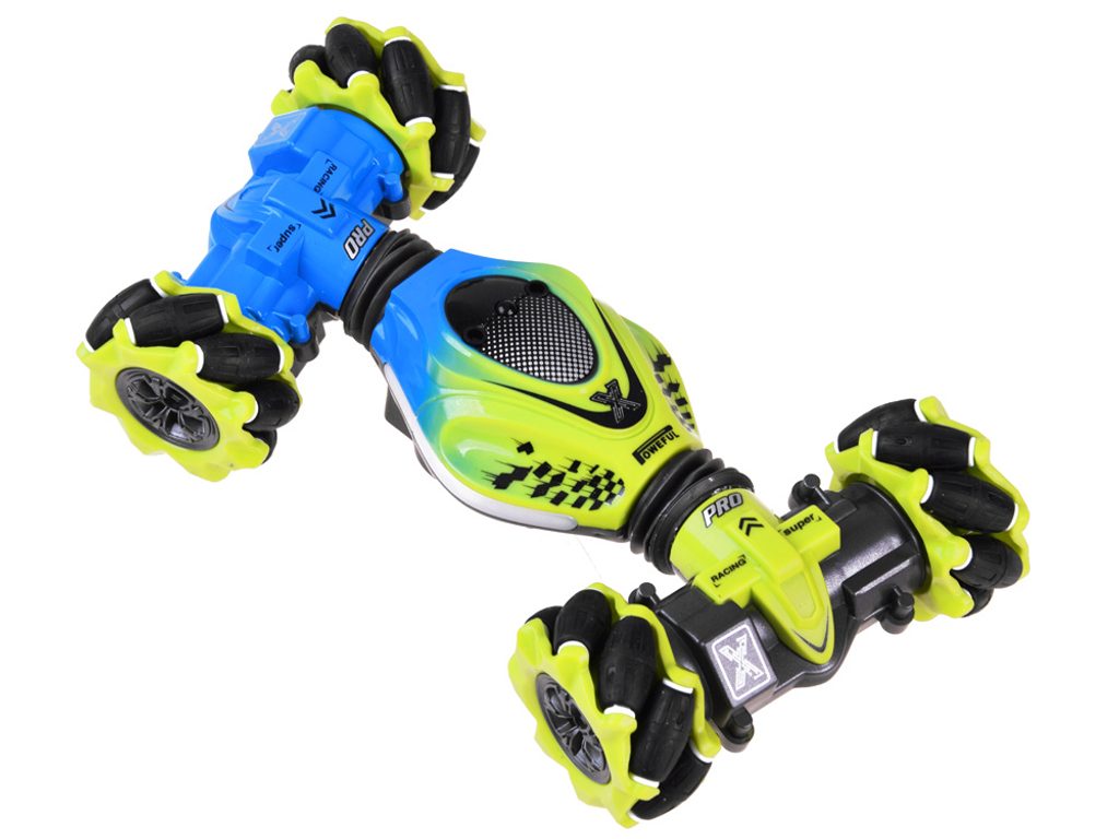 Auto s dálkovým ovládáním 2,4G Stunt 4WD Vehicle je určeno pro děti od 6 let věku. Vozidlo na speciálních driftových pneumatikách si perfektně poradí s hladkým povrchem, cizí mu není ani akrobacie, náhlé změny směru, rotace o 360°, zkroucení doleva i doprava, a to vše pomocí zabudovaných senzorů. Auto je ovládané dálkovým ovladačem, které funguje na principu detekce pohybu. Dálkové ovládání má pohybový senzor. Autíčko je vyrobeno z odolného plastu a má certifikaci CE.