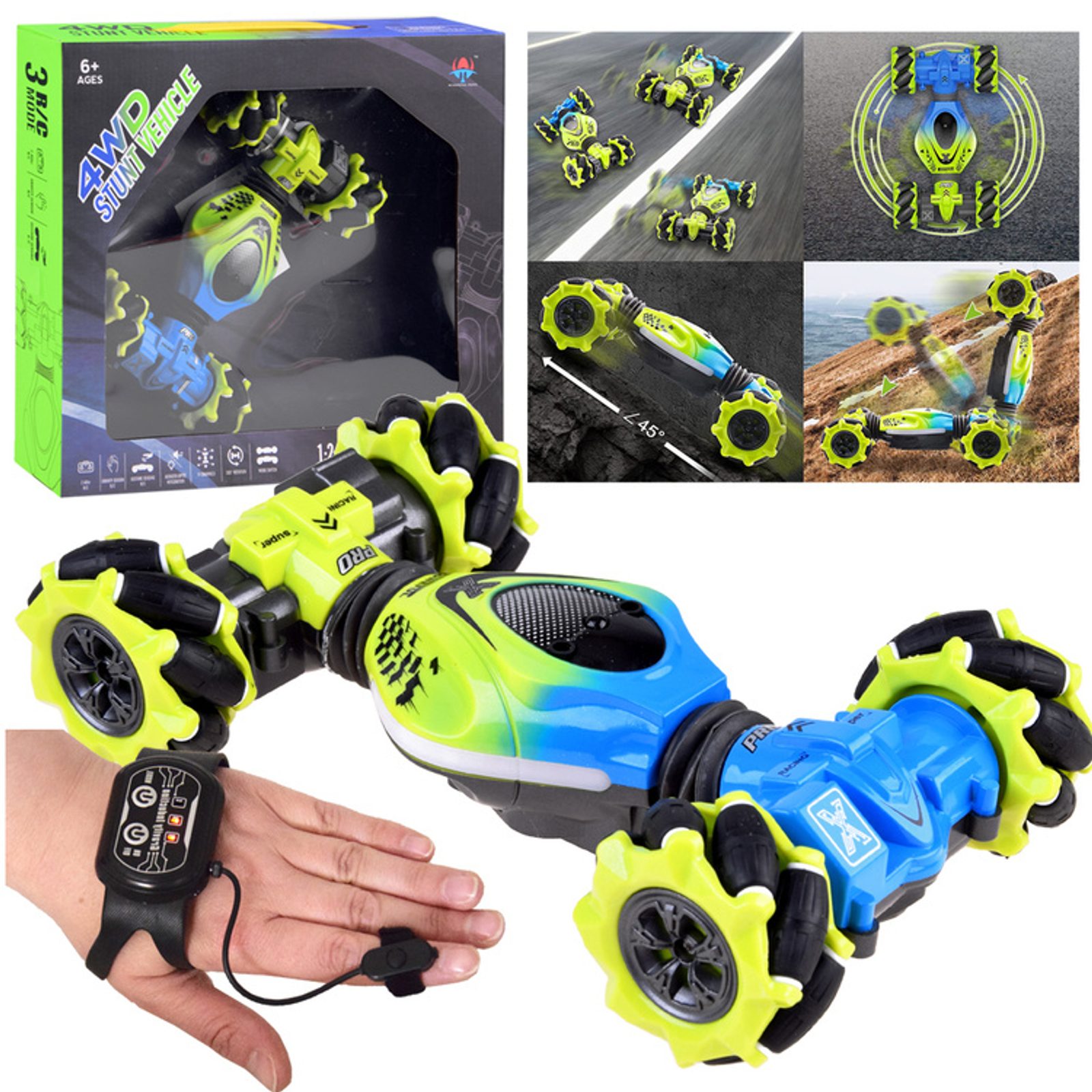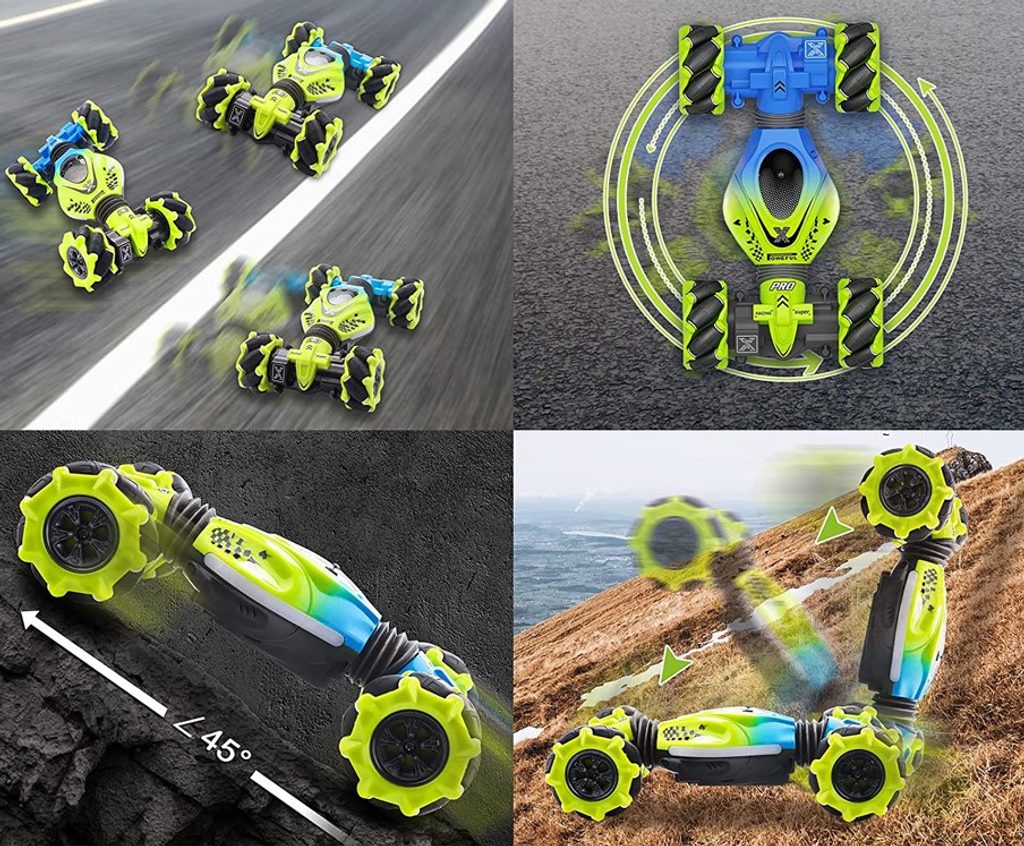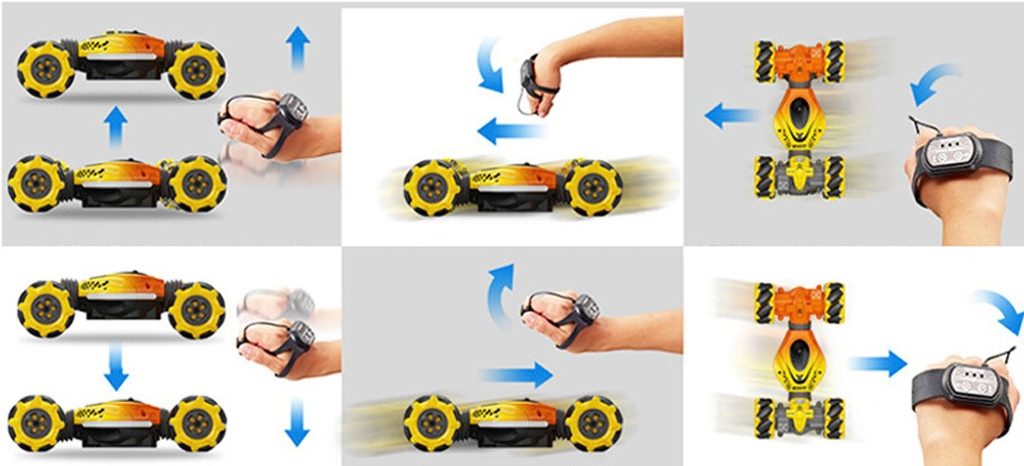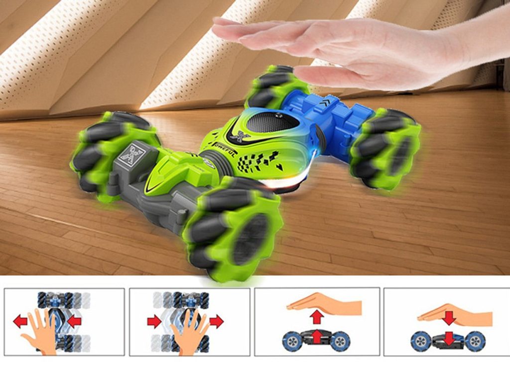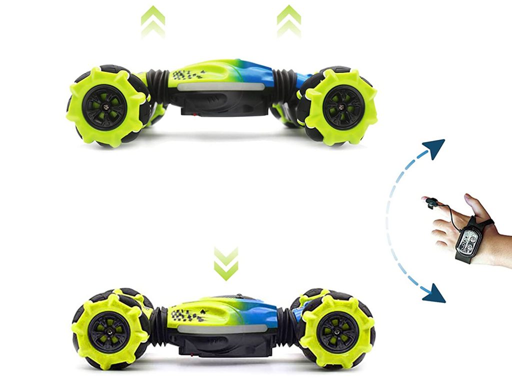 Auto s dálkovým ovládáním 2,4G Stunt 4WD Vehicle je určeno pro děti od 6 let věku. Vozidlo na speciálních driftových pneumatikách si perfektně poradí s hladkým povrchem, cizí mu není ani akrobacie, náhlé změny směru, rotace o 360°, zkroucení doleva i doprava, a to vše pomocí zabudovaných senzorů. Auto je ovládané dálkovým ovladačem, které funguje na principu detekce pohybu. Dálkové ovládání má pohybový senzor. Autíčko je vyrobeno z odolného plastu a má certifikaci CE.
