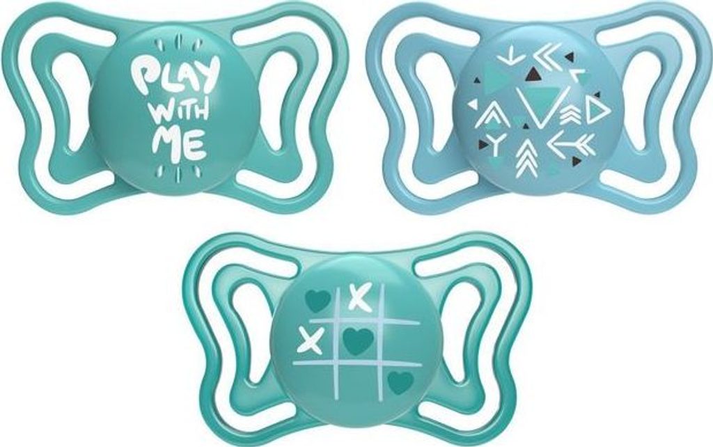 Je vyroben ze silikonu a má extra měkký a sametový povrch SOFTSENSE. Podporuje správný vývoj úst a zajišťuje dostatečnou cirkulaci vzduchu.
