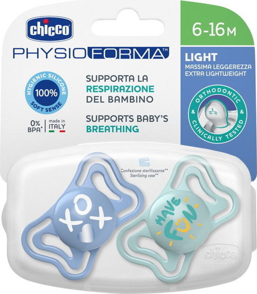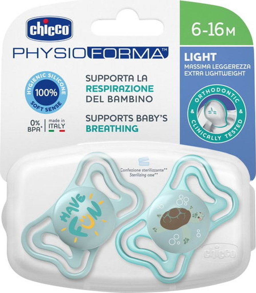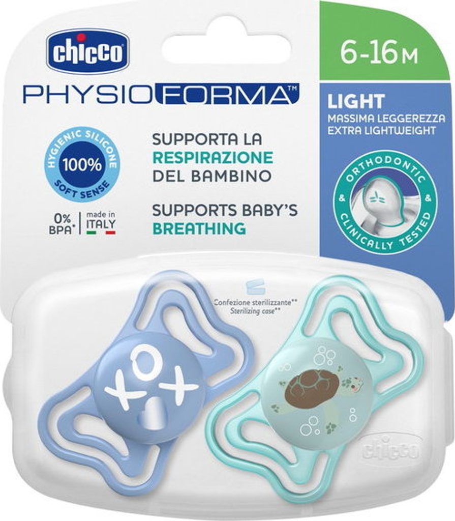 PhysioForma Light je nejlehčí dudlík z řady Chicco.Je vyroben ze silikonu a má extra měkký a sametový povrch SOFTSENSE. Podporuje správný vývoj úst a zajišťuje dostatečnou cirkulaci vzduchu.