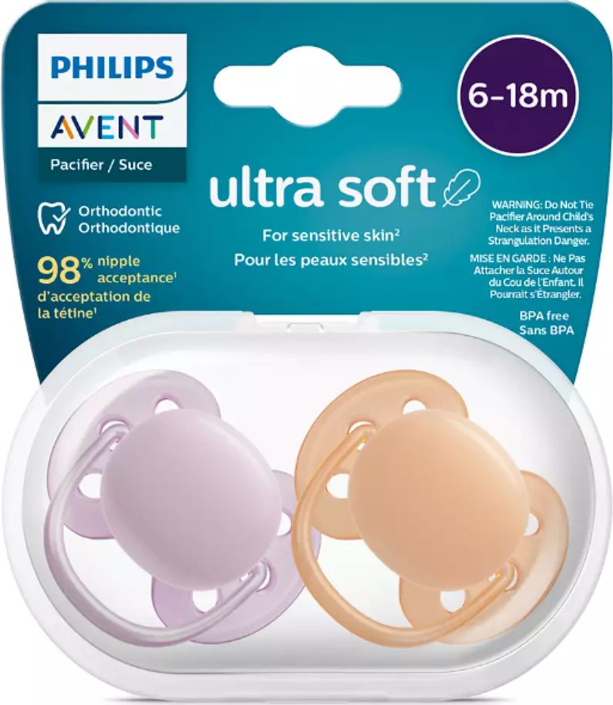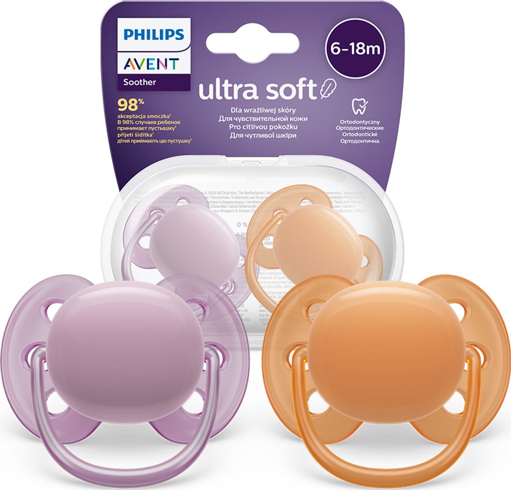Pečujte o citlivou pokožku svého miminka s dudlíkem Philips Avent Ultra Soft. Jeho super měkký*, flexibilní štít se přizpůsobí tvaru tváří vašeho dítěte a zanechá na pokožce méně podráždění a stop.