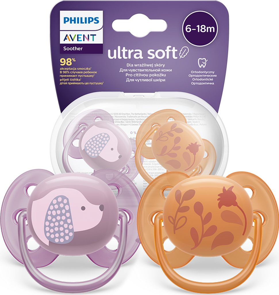 Pečujte o citlivou pokožku svého miminka s dudlíkem Philips Avent Ultra Soft. Jeho super měkký*, flexibilní štít se přizpůsobí tvaru tváří vašeho dítěte a zanechá na pokožce méně podráždění a stop.