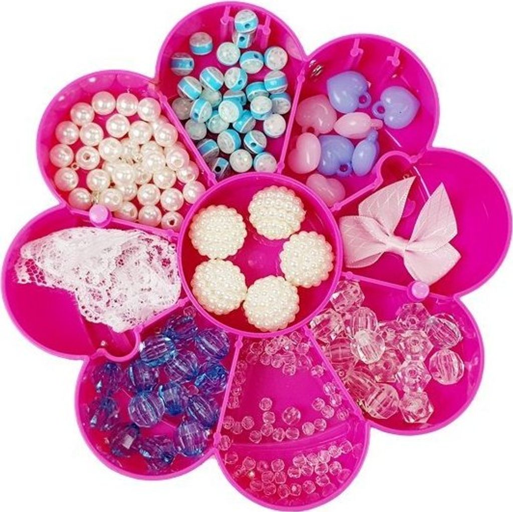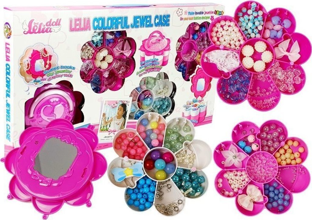 Nyní můžete mít všechny korálky na jednom místě a kdykoli budete mít chuť, můžete krabičku otevřít a začít vytvářet vlastní ručně vyráběné šperky. Krabice navíc obsahuje zrcátko, ve kterém můžete obdivovat svá díla nebo zkrášlovat svou krásu. Vytvořte si svůj vlastní styl! Určitě se nejedna kamarádka zeptá, kde jsi sehnala tak krásný náramek nebo přívěsek. Růžovobílá krabička má tři úrovně ve tvaru kytičky, kam si můžete uložit korálky. Na víku je krásné srdíčko, bude ozdobou pokojíčku nejednoho holčičího pokoje.