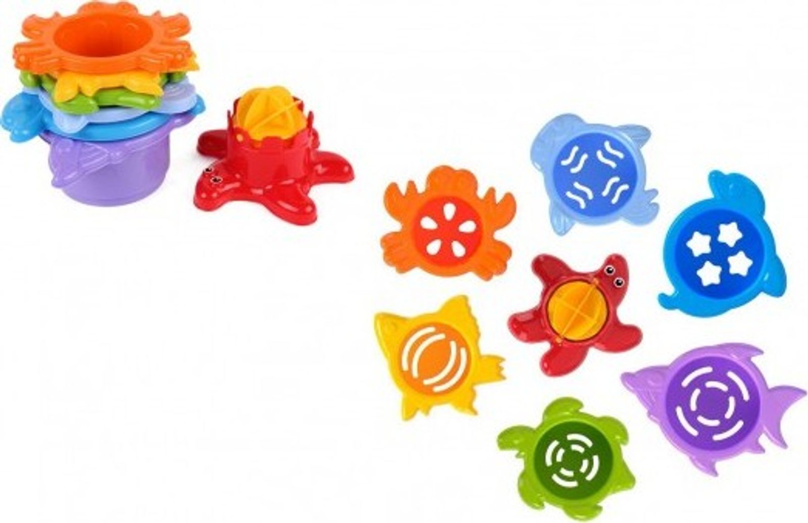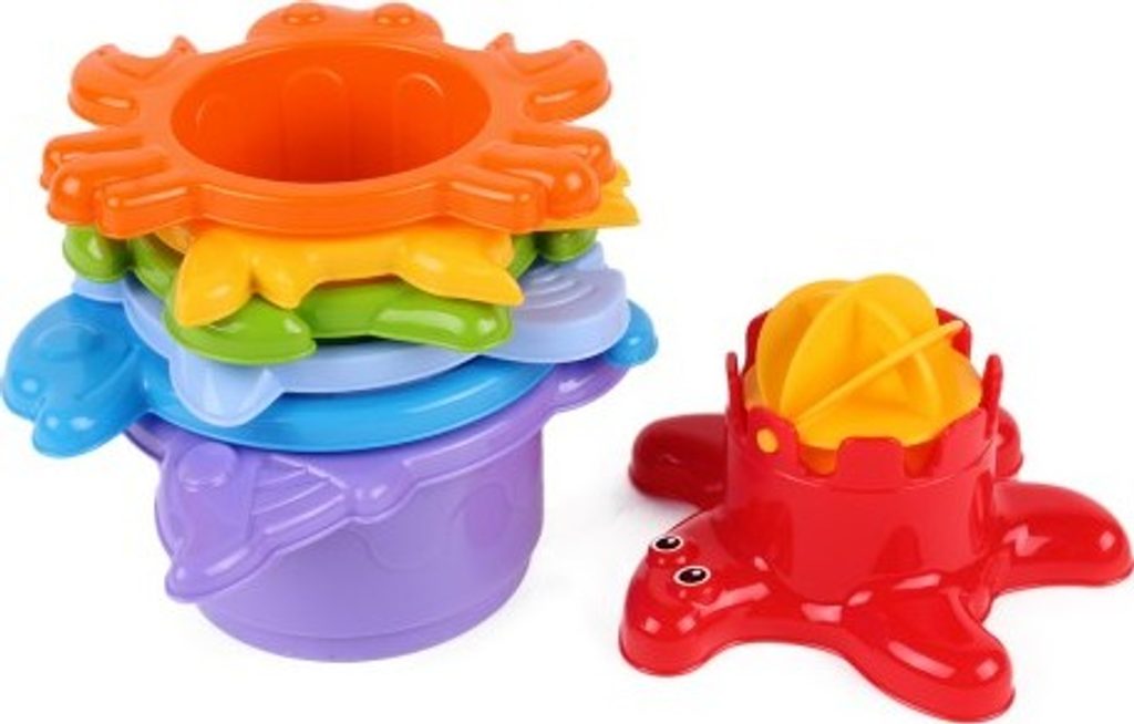 Ze stohovacích kalíšků lze postavit vysokou věž. Kubus obsahuje sedm dílů různých barev, které do sebe zapadají. Skládanku si děti mohou vzít na písek nebo do vody. Rozměry balení 11 x 14 x 11 cm. Vhodné pro děti od 12 měsíců.