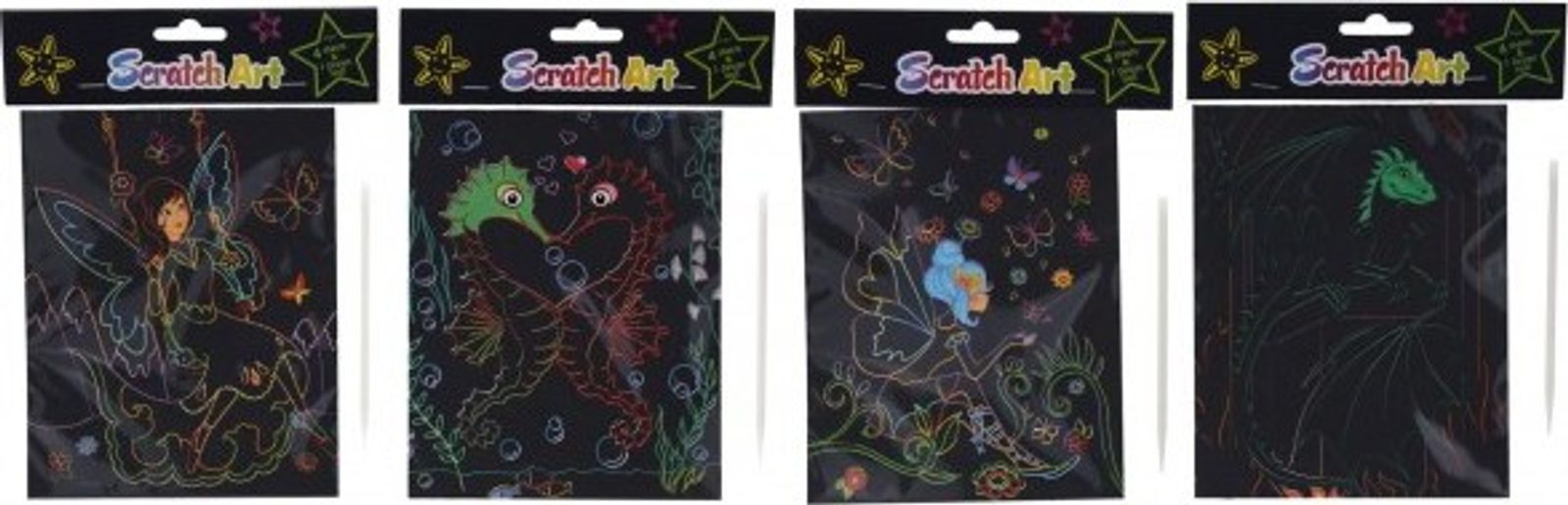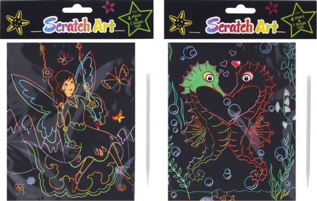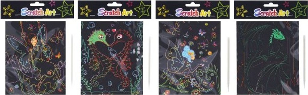 Kreativně se vydovádějte na vyškrabovacím obrázku. Můžete pomocí vyškrabovacího pera vytvářet různé pestrobarevné obrázky. V balení nalzente 4 obrázky.