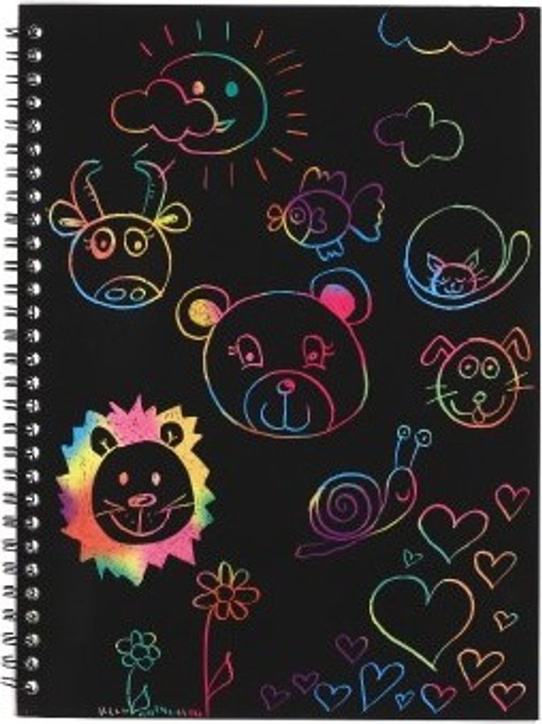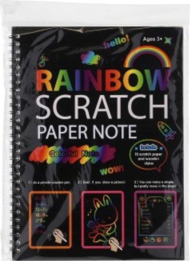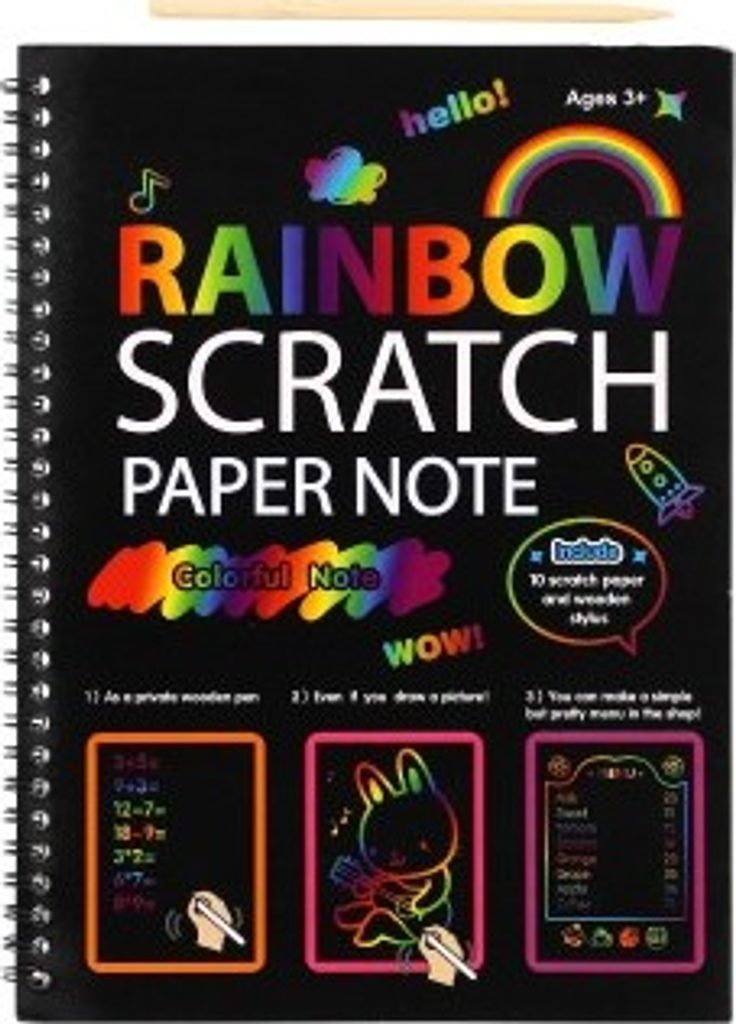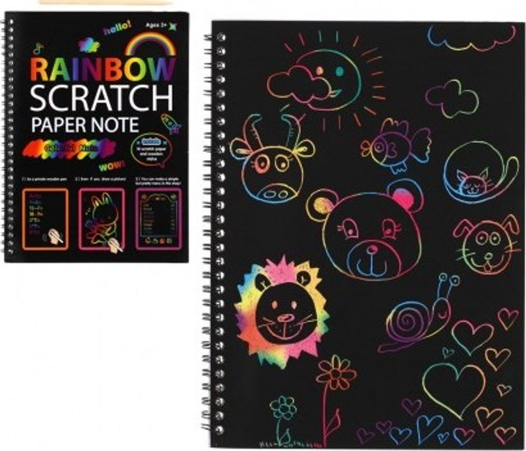 Kreativně se vydovádějte na vyškrabovacím notesu. Na jednotlivých listech můžete pomocí vyškrabovacího pera vytvářet různé pestrobarevné obrázky. Balení obsahuje notes 10 listů + vyškrabovací tyčinku.