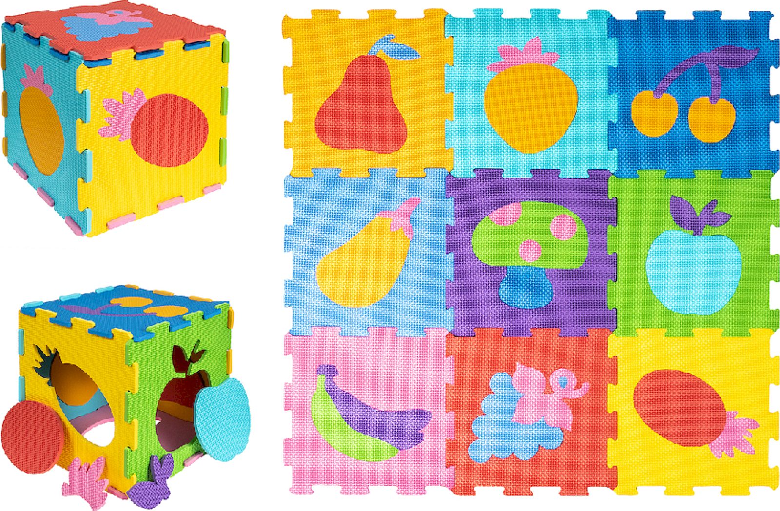 Barevnou pěnovou podložku lze použít jako koberec i jako puzzle. Je vyrobena z měkké pěny, příjemné na dotek. Lze ji použít i jako podložku pro jiné hry. Hračka učí: vnímavosti, poznávání barev a tvarů, stavění prostorových postaviček a hře s fantazií. Nápady, jak si hrát s puzzle: spojte všechny dílky s vaším dítětem a řekněte mu, co na nich je. Postavte si z hádanek trojrozměrné figurky, například kostku nebo krabici, a společně přemýšlejte, jak si s nimi hrát. Udělejte si z nich stůl. Existuje mnoho způsobů, jak hrát, jste omezeni pouze svou fantazií. Naskládejte pěnové obrázky dohromady. Tato hra dokonale rozvine schopnost logického a prostorového myšlení. Můžete také stavět pěnové konstrukce, kostky, věže nebo pyramidy.