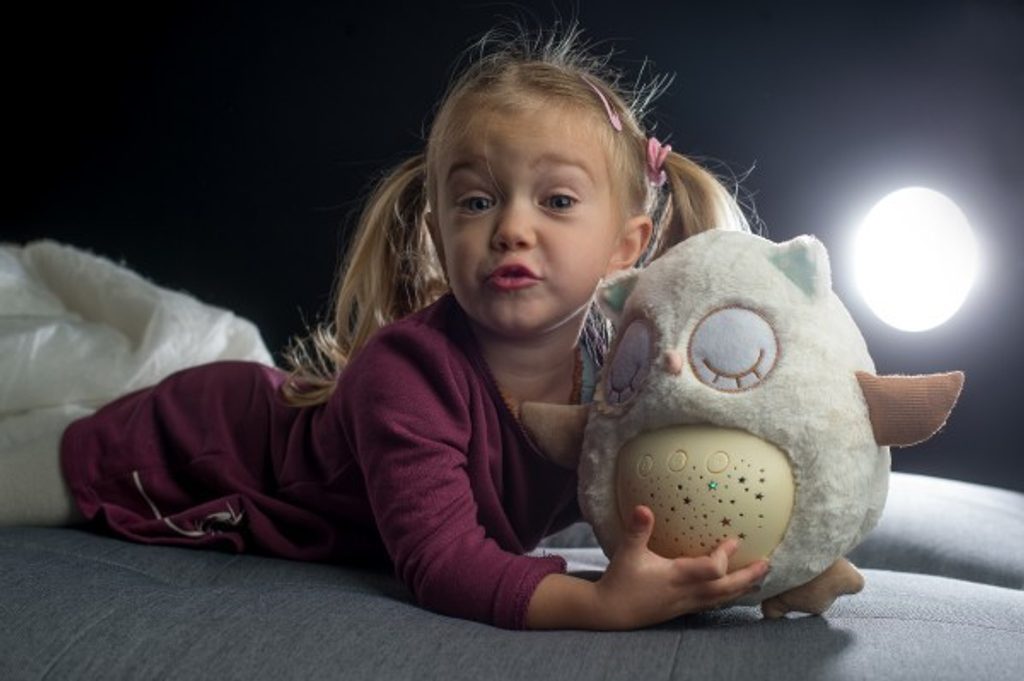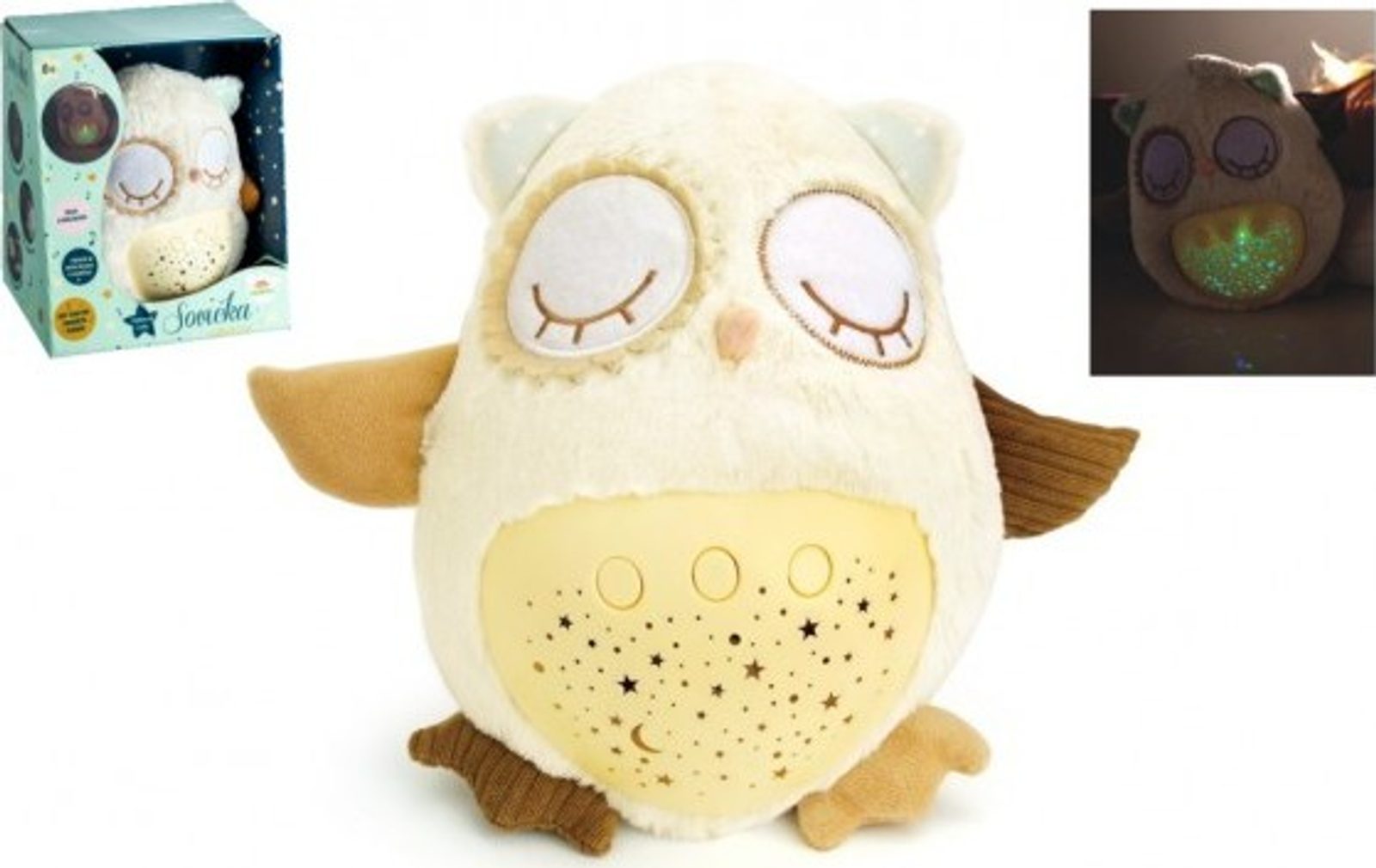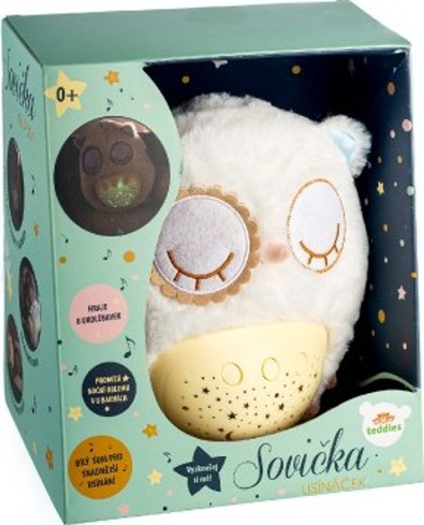 Plyšový usínáček v podobě sovičky pomáhá dětem snadněji usnout za pomocí příjemných melodií a tlumeného světla. Po zmáčknutí tlačítek na bříšku se z pokojíčku stane rázem říše snů. Sovička promítá noční oblohu v 8 barvách, hraje 8 ukolébavek a také zvuky, na které jsou děti zvyklé od maminky z bříška. Po odehrání ukolébavky promítá noční oblohu cca 1 minutu, poté se vypne.