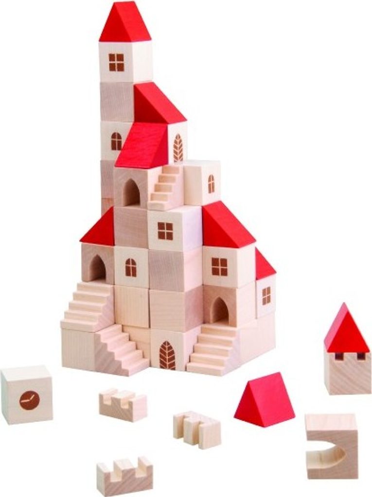 Sada se skládá z dřevěné základny s bloky v různých velikostech a tvarech. …