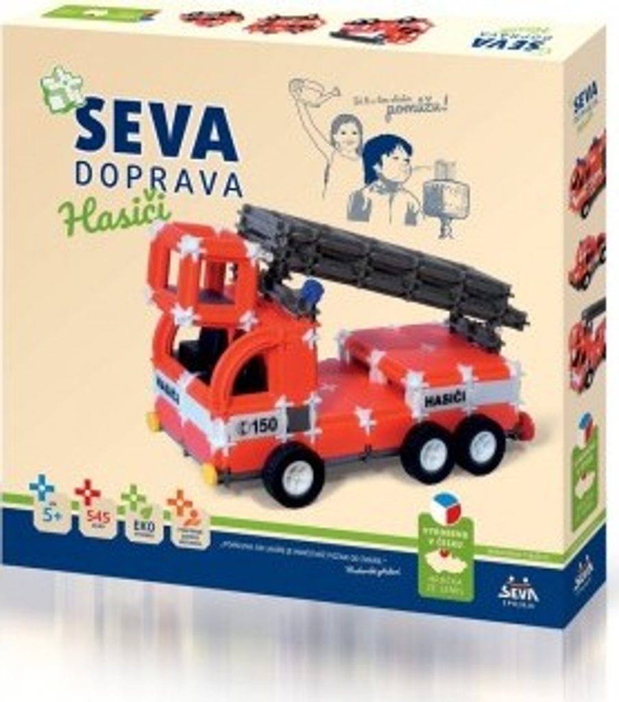"Hóóóřííí, hóóóřííí...." Někde hoří! Rychle nasedni do hasičské cisterny a vyraž na pomoc uhasit velký požár. Je tady další skvělá novinka – rozšiřujeme naši úspěšnou řadu SEVA DOPRAVA o novou stavebnici Hasiči! Tato stavebnice obsahuje celkem 545 dílků, ze kterých můžete sestavit např. hasičský vůz se zvedací plošinou nebo vůz s velkou cisternou, která se navíc dá i natáčet. Najdete v ní i dílky pro sestavení velitelského, neboli technického vozu, díky kterému budete zaručeně na místě nehody jako první. Určitě si sestavíte i své vlastní hasičské modely podle své fantazie a nápadů, žádné meze se tady nekladou. Všechny modely si navíc můžete ozdobit i samolepkami s nápisem „HASIČI, RESCUE a FIRE“ a taky s telefonním číslem „150“, takže se děti již od mala naučí toto velice důležité číslo pro život. To všechno a mnohem víc Vás čeká v nové stavebnici SEVA DOPRAVA – Hasiči! Rozměry balení 35 x 33 x 5 cm. Vhodné pro děti od 5 let.