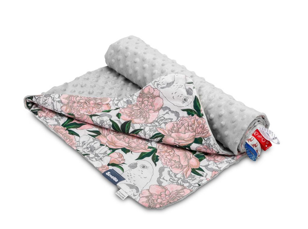 Lehká deka Minky je perfektním řešením na jarní a letní procházky. Vyrobeno z jemné bavlny a jemné minky tkaniny, v závislosti na potřebách lze použít oboustranně . Každý vzor deky má jiný barevný potisk . Na dece jsou také barevné stuhy , které zaujmou každé miminko. Univerzální lehká deka do kočárku nebo postýlky o rozměru 75×100 cm.