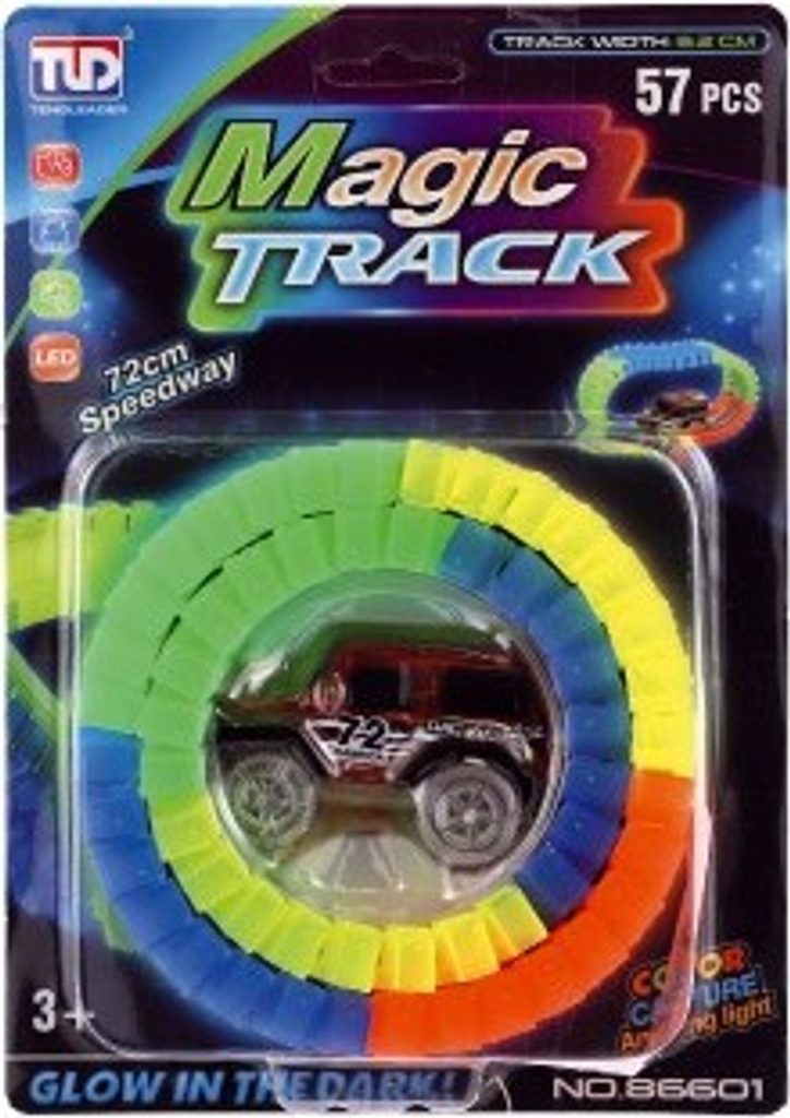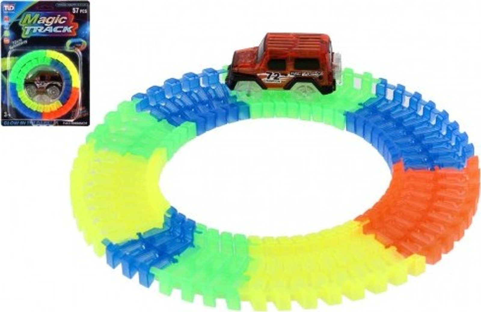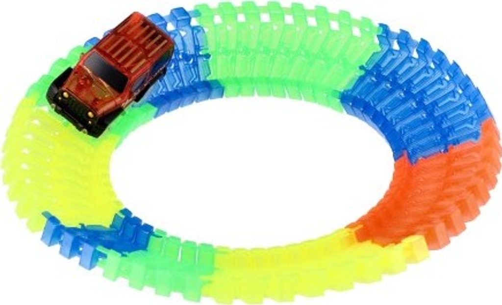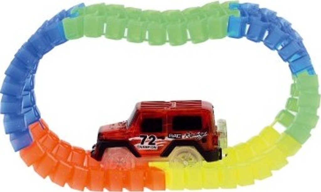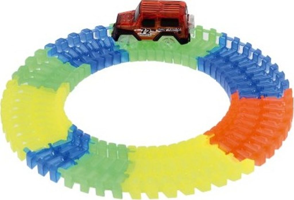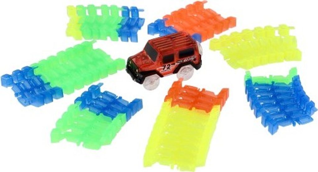 Sestavte si parádní dráhu dle své fantazie a pusťte autíčko na cestu! Nebojte, že by se Vám zatoulalo, bude přesně kopírovat každý kousek dráhy. S úžasnou neonovou závodní dráhou, která se dá ohýbat a otáčet, navíc svítí ve tmě zažijete opravdové závody! Do autíčka, které má tři blikající světla a je super rychle musíte dát baterii 1x AA, není součástí balení. Délka trati: 72 cm (57 ks)