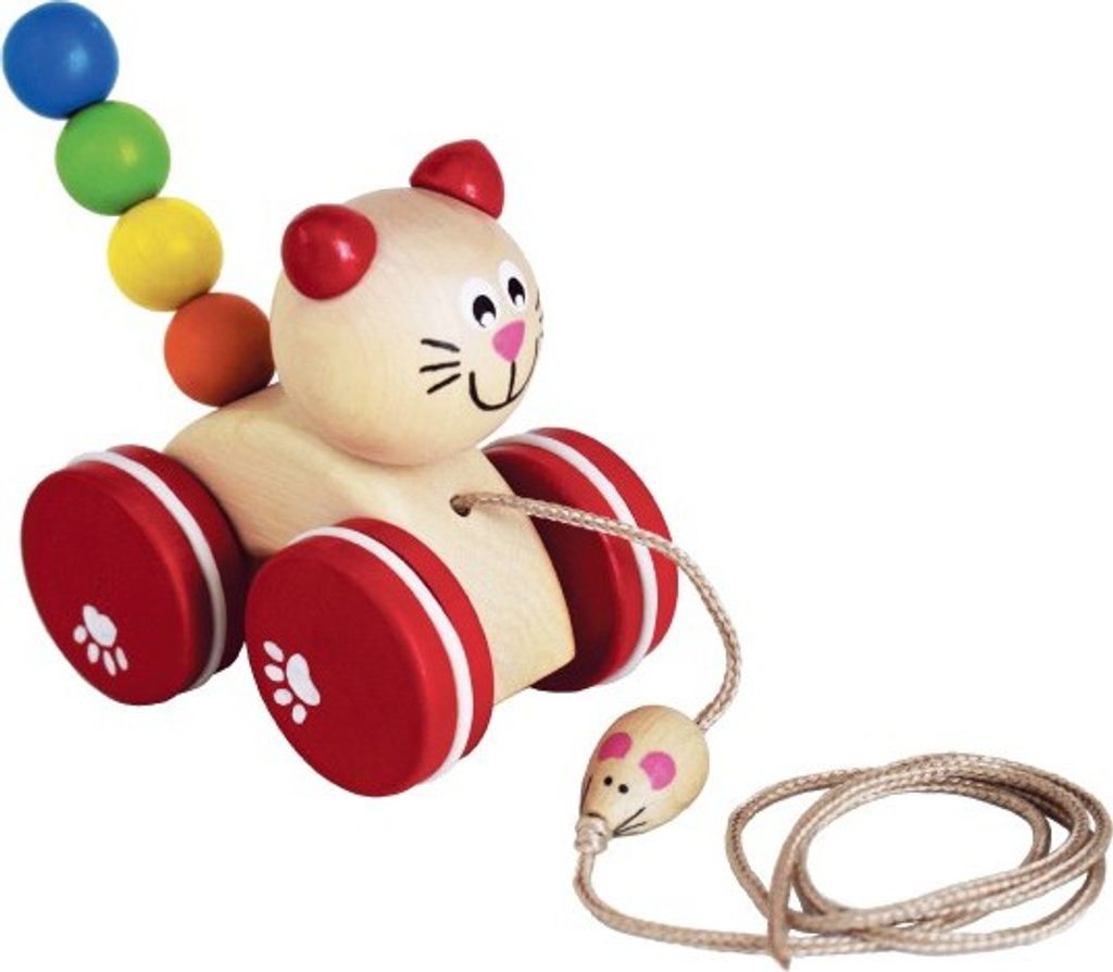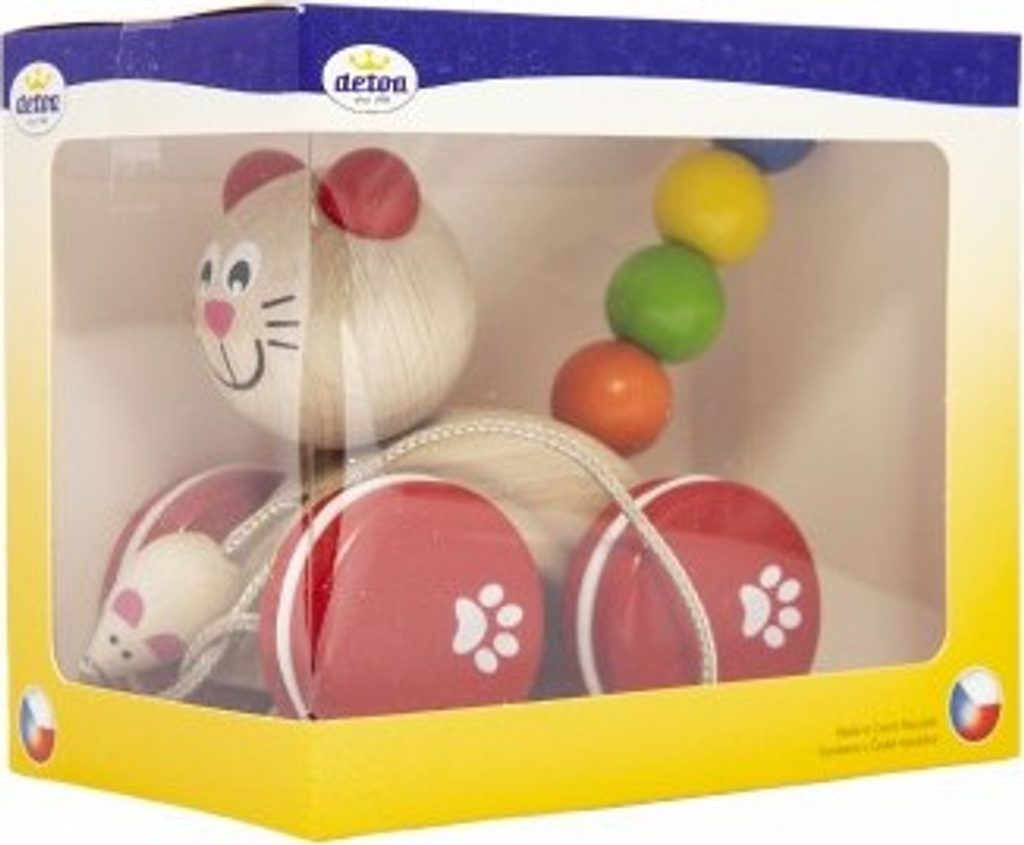 Začalo vaše děťátko již s prvními krůčky? Každé dítko má z chůze obrovskou radost a pro ještě větší zábavu mu pořiďte dřevěnou tahací hračku, kterou jsme měli snad všichni, když jsme byli malí. Tato tahací kočka má navíc na provázku přivázanou myšku.
