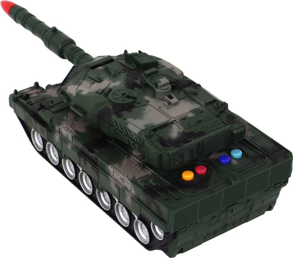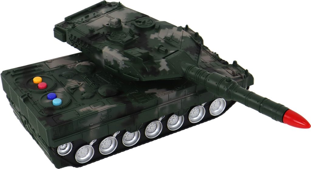Ale to není všechno! Na tanku jsou barevná tlačítka, která vám umožní změnit hudbu a vytvořit tak ještě interaktivnější atmosféru. Není to jen dálkově ovládané vozidlo, je to také multimediální zážitek, který potěší a zaujme.