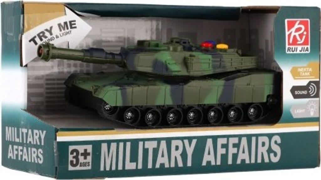 Tank na setrvačník se bude líbit klukům, kterým se to doma vojáčky jenom hemží. Každá pořádná armáda musí mít i tanky, se kterými už žádnou bitvu neprohraje a celá válka bude vyhraná. Hračka vydává zvukové i světelné efekty.Spínače pro zvukové efekty jsou na střeše. Na baterie: 3x AG13, jsou součástí výrobku.
