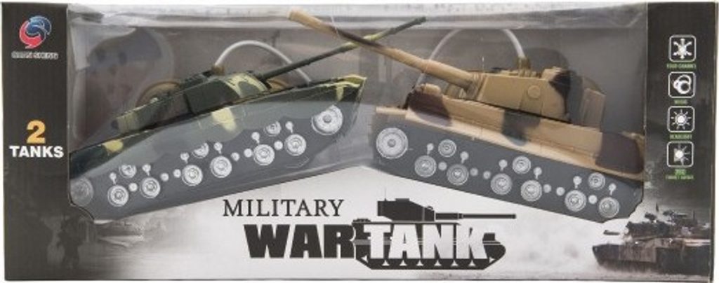 Balení obsahuje 2ks tanků a 2 ks ovládání, tanky proti sobě nebojují.