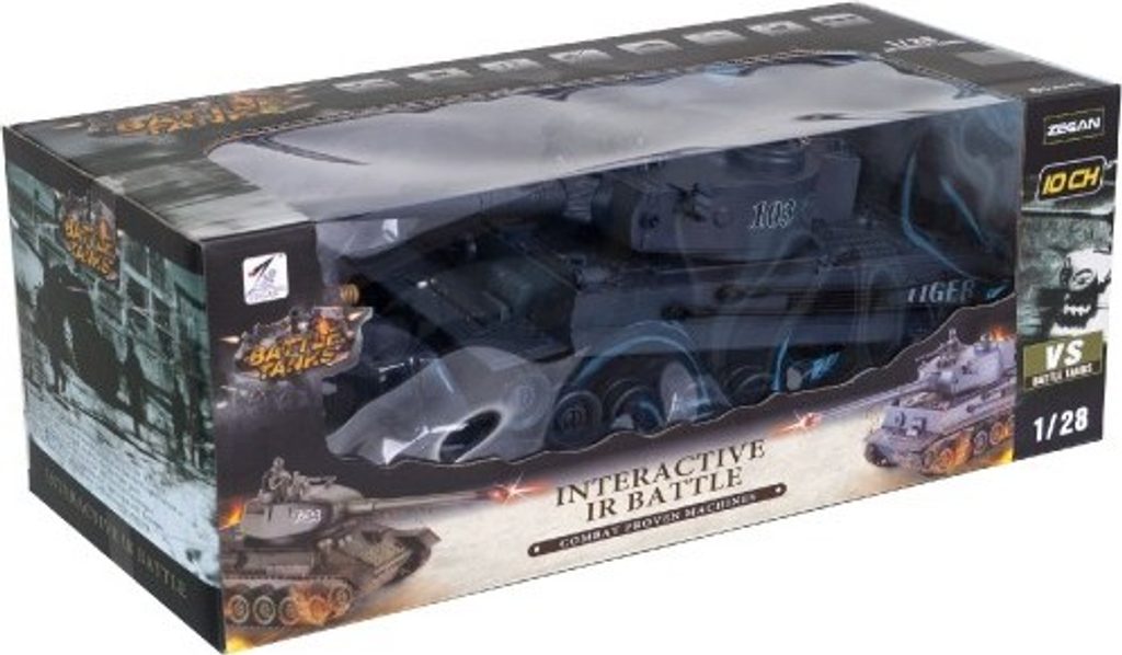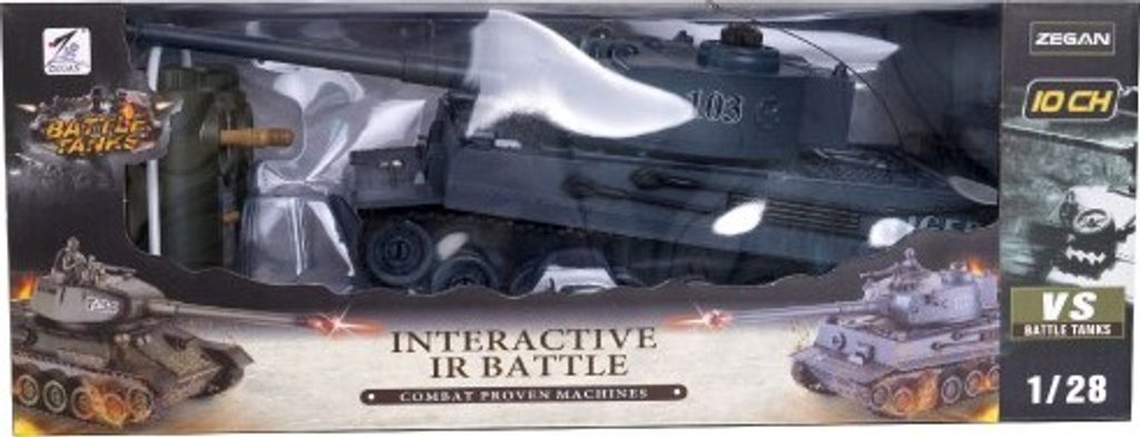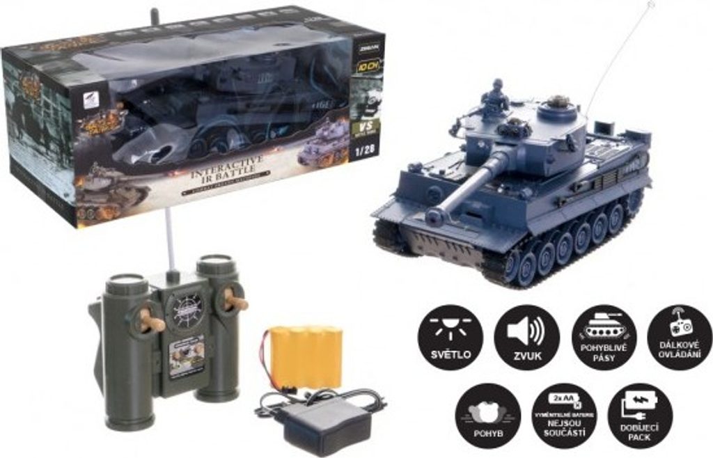 Tank TIGER I o rozměru 33 cm potěší každého chlapce. Tank se pohybuje rychle a pružně všemi směry a umí se také otáčet na místě. Má zvukové a světelné efekty. Velmi detailně zpracovaný funkční RC model. Skvělé jízdní vlastnosti, realistické zvuky. Na baterie, s dobíjecím packem, se zvukem a světlem, 40MHz, v krabici.