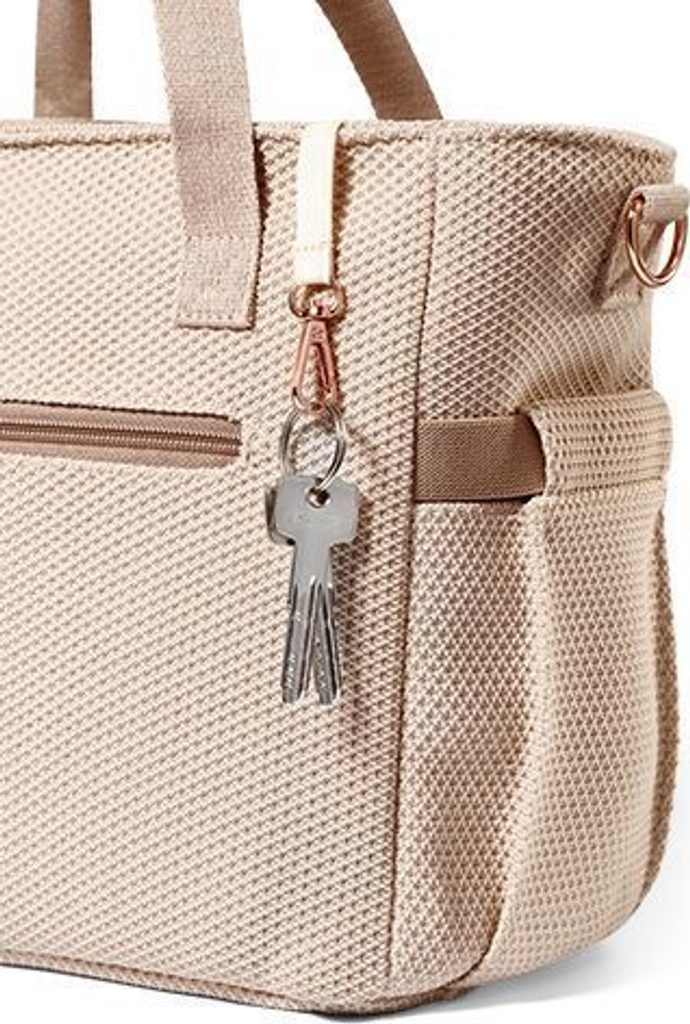 Uvnitř najdete 9 praktických kapes, přebalovací podložku, šňůrku na klíče nebo dudlík.