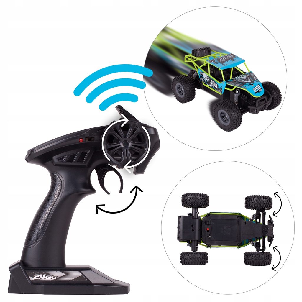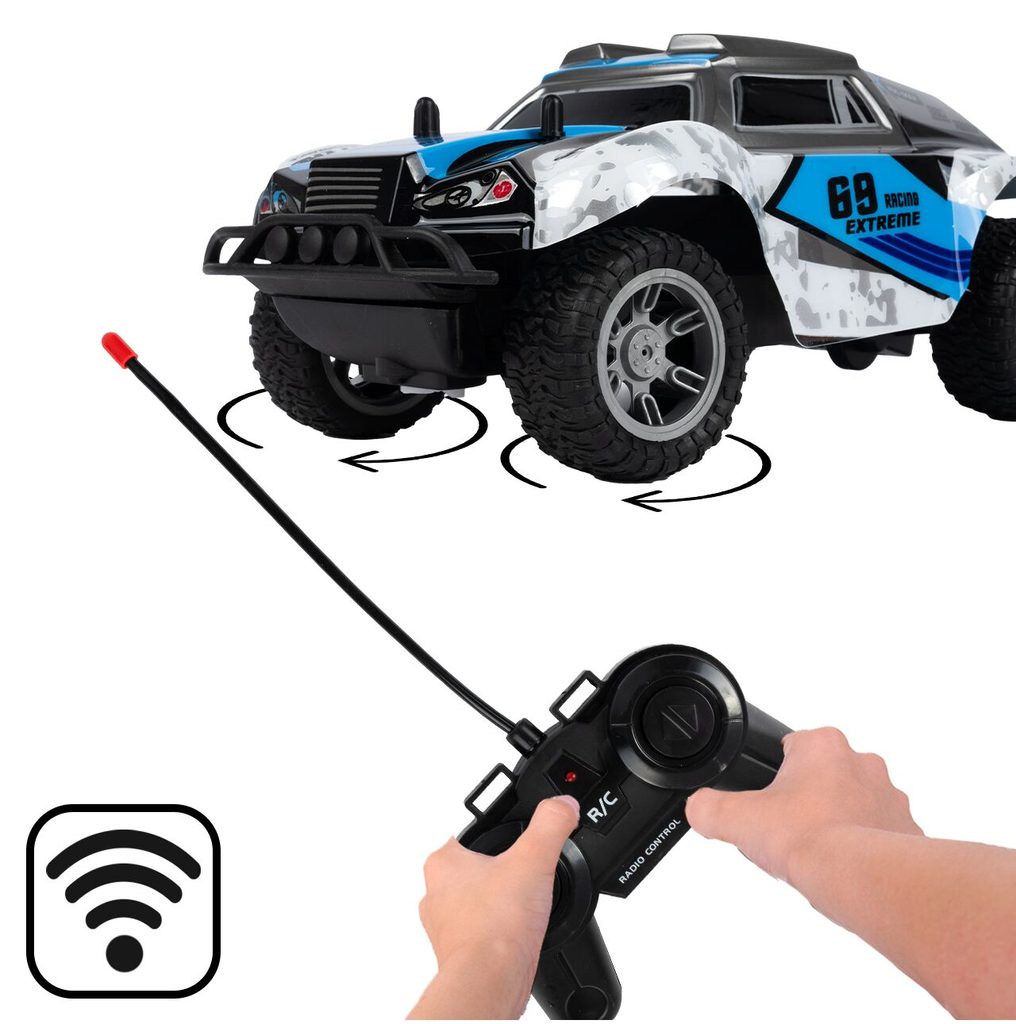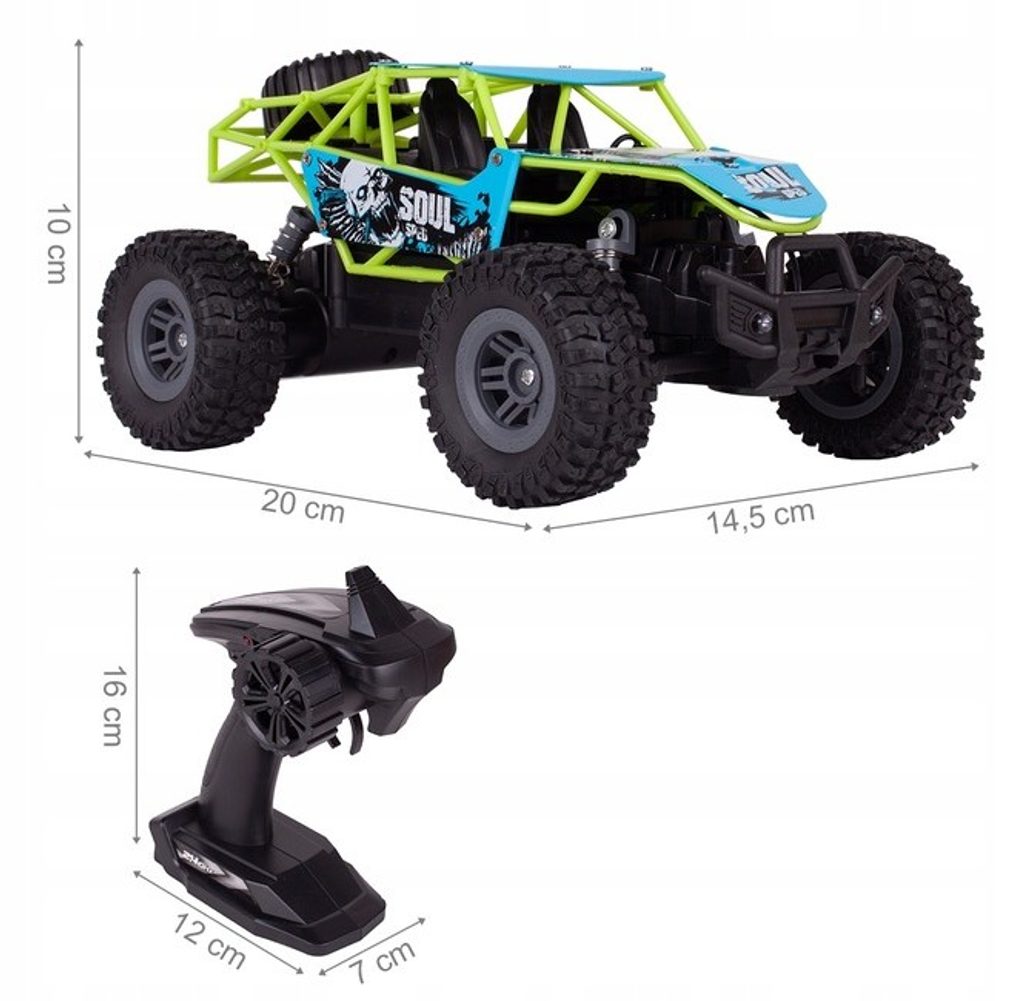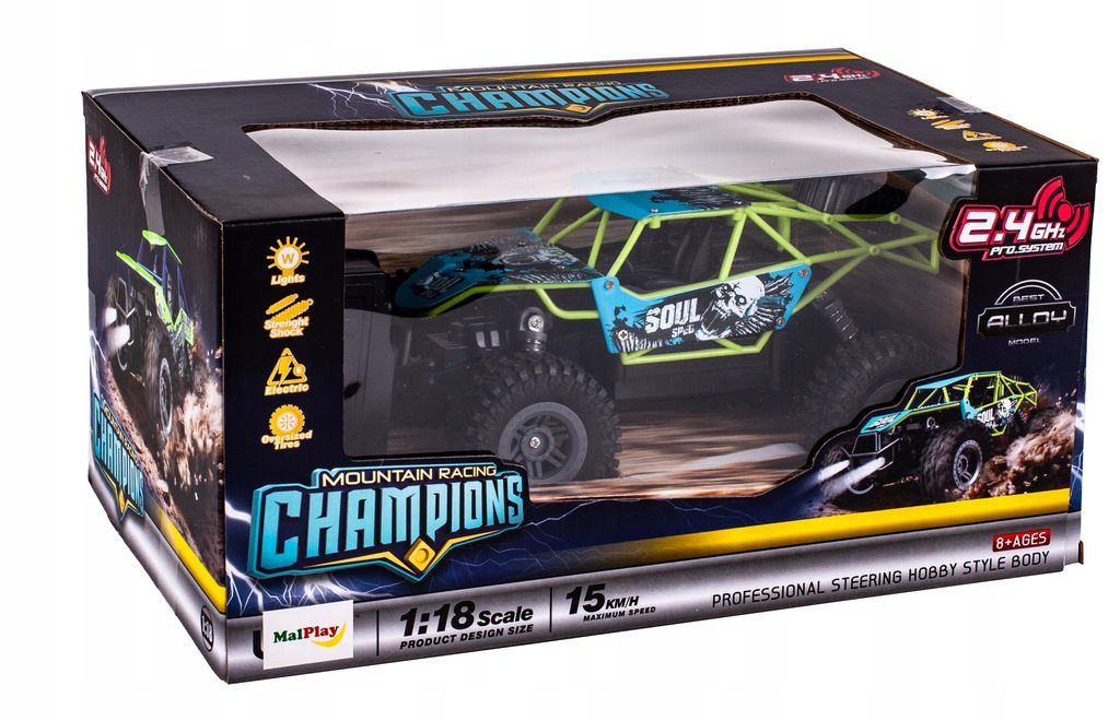 Terénní autíčko Mountain Champion na dálkové ovládání s dálkovým ovladáním 2,4GHz umožnuje jízdu dopředu a dozadu, zatáčí do všech směrů. Je osazeno gumovými koly s velmi dobrou přilnavostí a je vybaveno silnými tlumiči nárazů. Součástí balení je 3,7V 500mAh akumulátor napájení autíčka, nabíječka a dálkový ovladač. Dálkové ovládání je napájeno bateriemi, které nejsou součástí balení. Autíčko je vyrobeno z odolného plastu a má certifikaci CE.