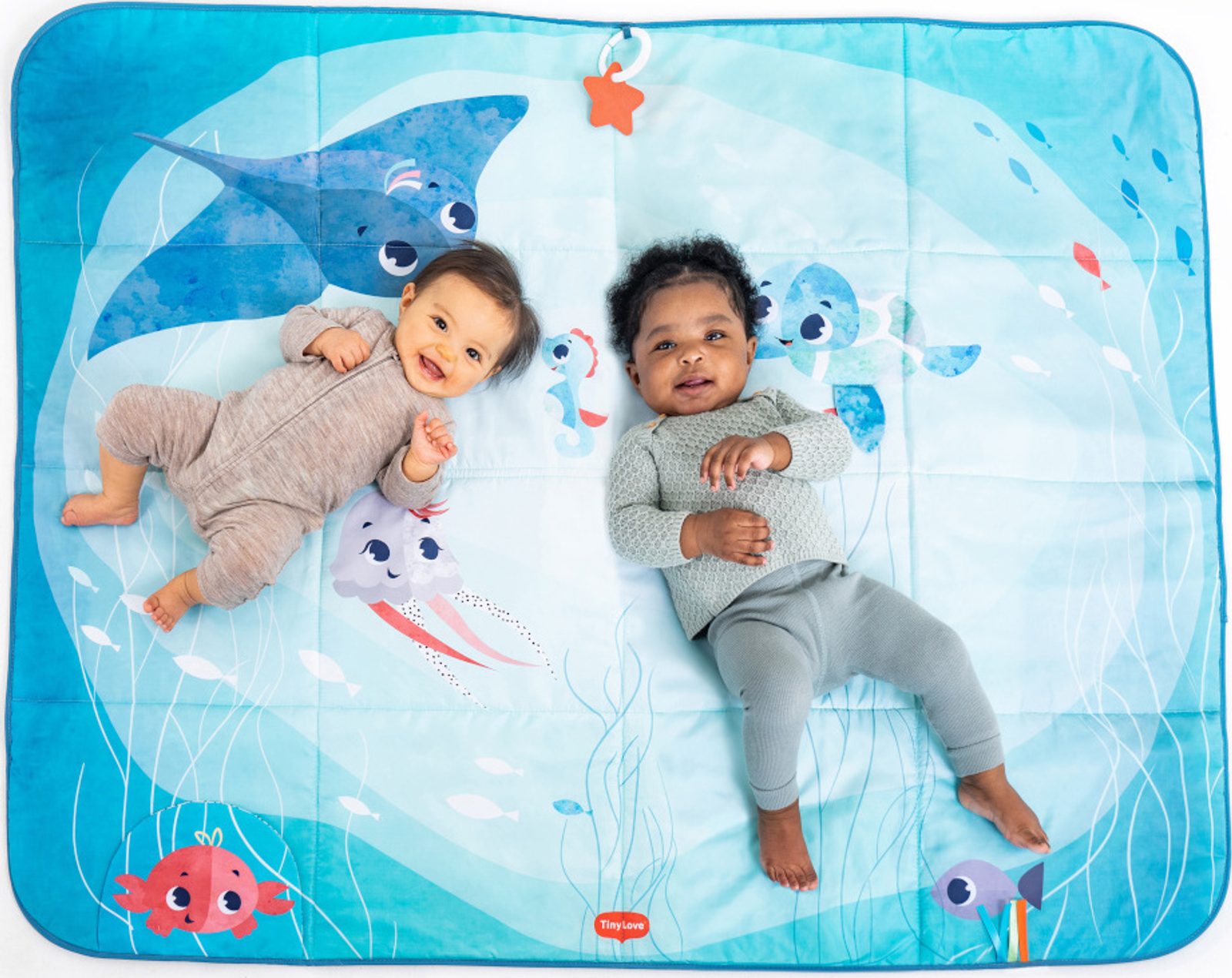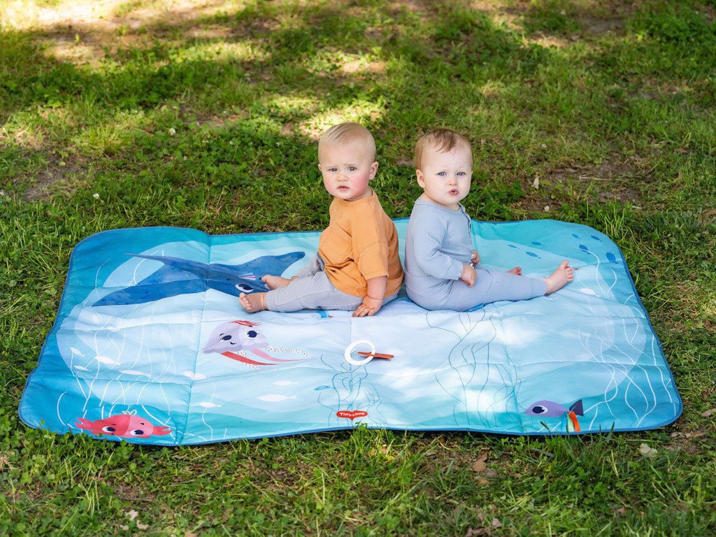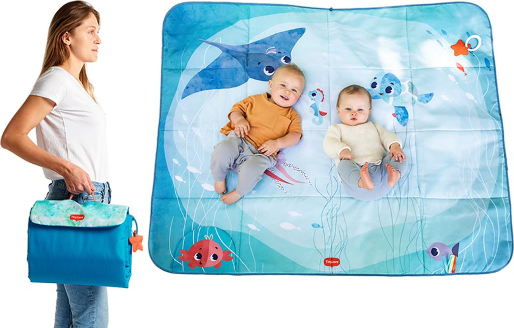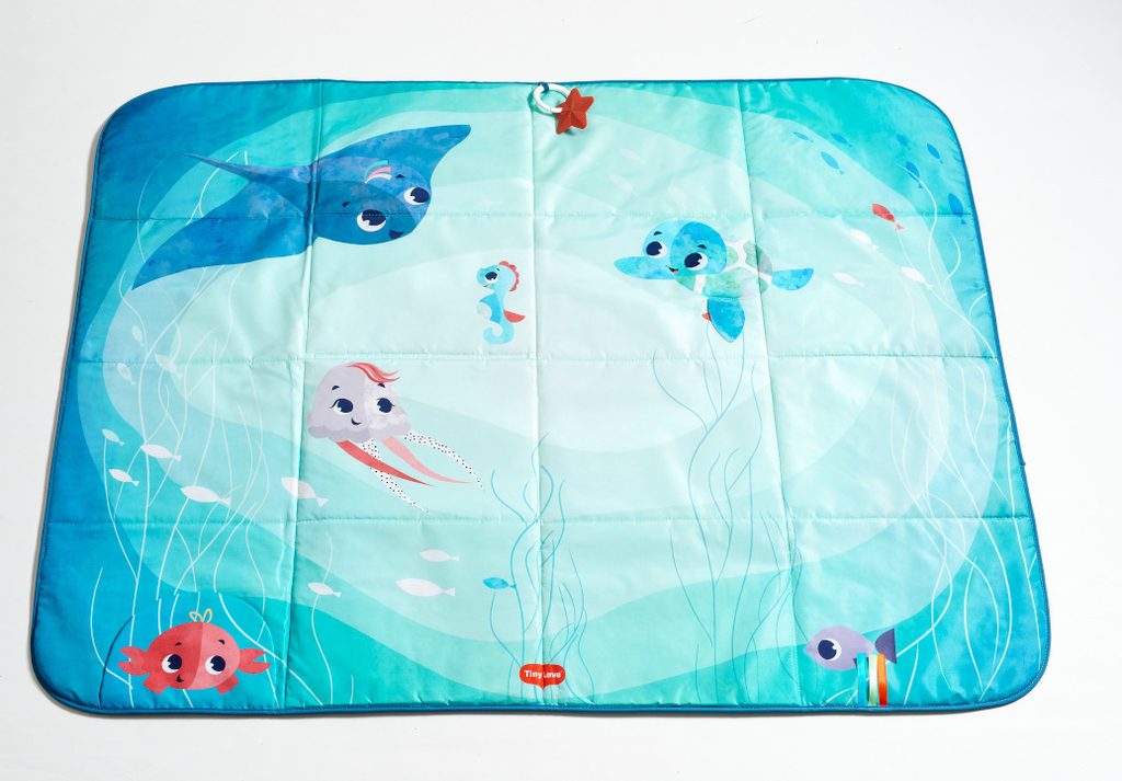 Užívejte si s vaším dítětem hraní na čerstvém vzduchu díky pohodlné hrací dece s voděodolnou spodní stranou. Prostorná deka nabízí pět zábavných aktivit a krásné ilustrace ze života pod mořskou hladinou, které vybízí k hraní rodiče s dítětem a vyprávění a vymýšlení příběhů.