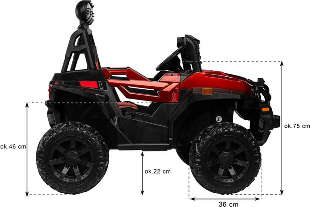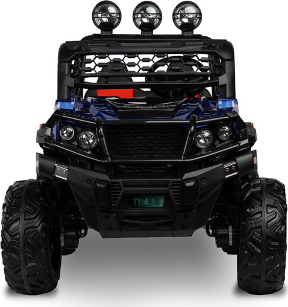 Timus je velké vozidlo na baterie v terénní verzi. Má všechny klíčové prvky, díky kterým se vaše dítě bude cítit jako ve skutečném SUV: 35 centimetrů hluboký dezén, 4 výkonné motory, vysoká světlá výška až 20 cm a příčka se třemi LED světlomety.