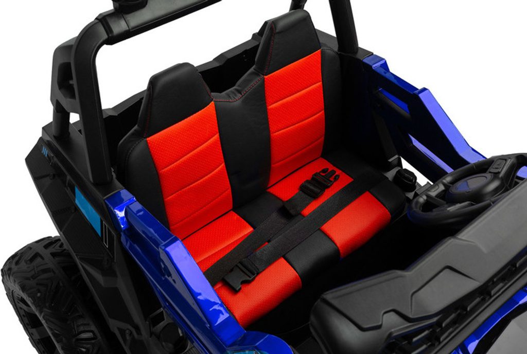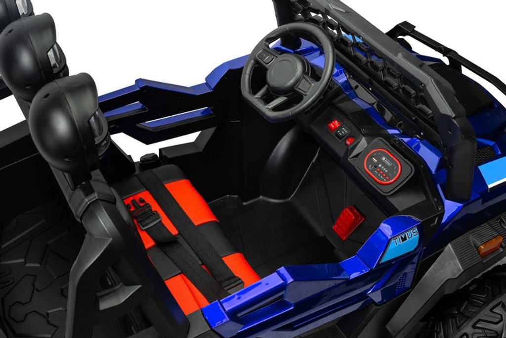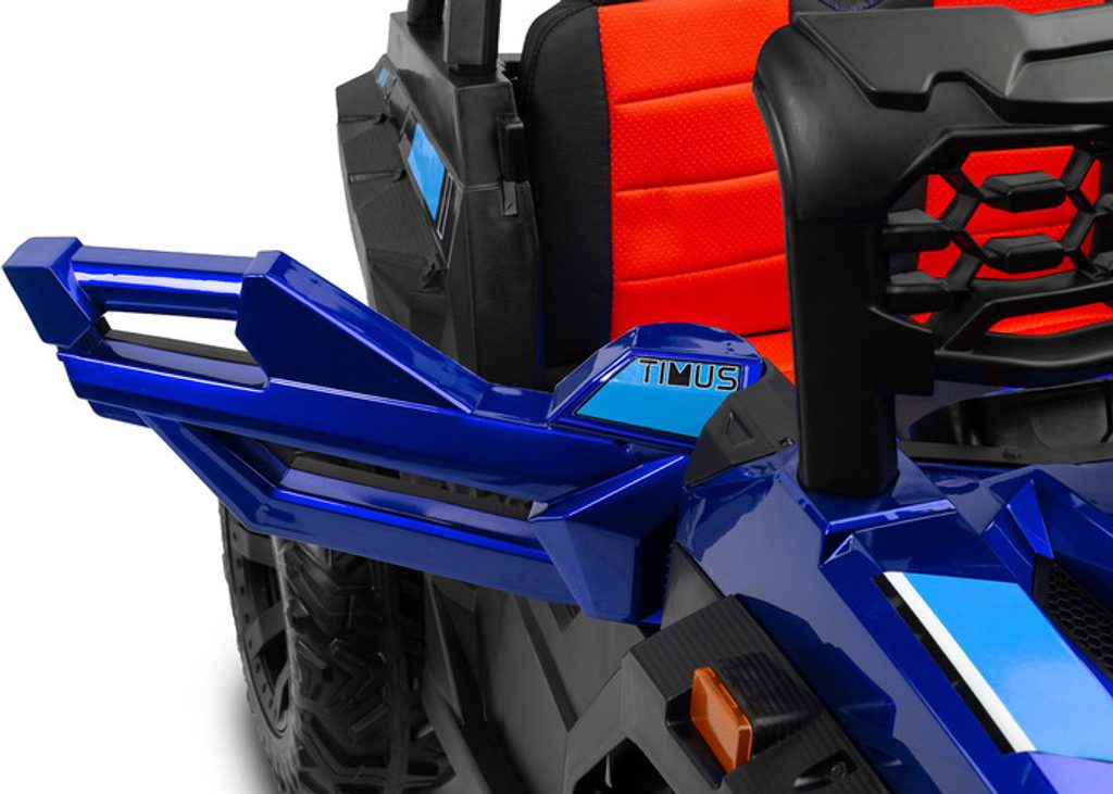 Pohodlí při jízdě zajistí velké a pohodlné sedadlo z ekokůže vybavené bezpečnostním pásem. Díky velké velikosti Timuse se o něco starší děti budou moci naučit smyslu pro prostor, ale také odpovědnosti a samostatnosti. Na druhou stranu rodiče menších dětí mohou vozidlo ovládat na dálku nebo využít funkci houpání, díky kterému je vozidlo mírně vpřed a vzad. Čas strávený v autě vám navíc zpříjemní multimediální panel s USB a bluetooth.