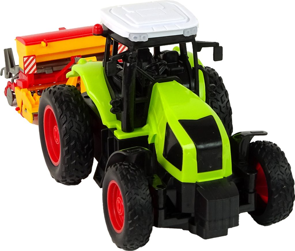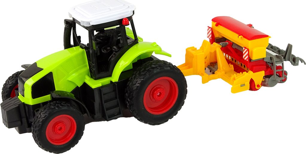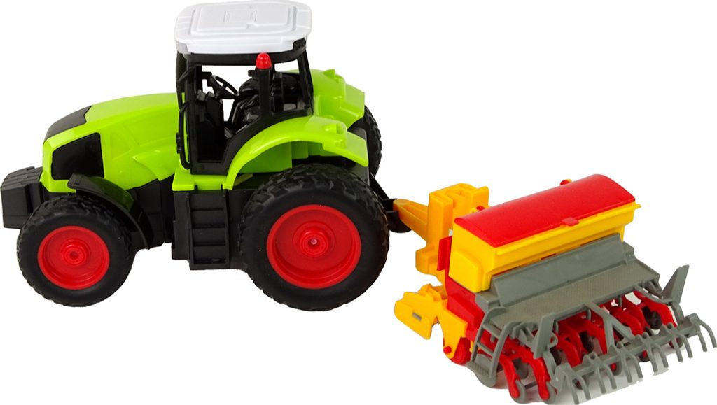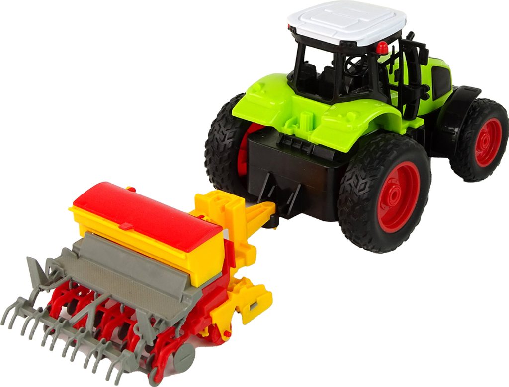 Traktor na dálkové ovládání se secím strojem - zelený