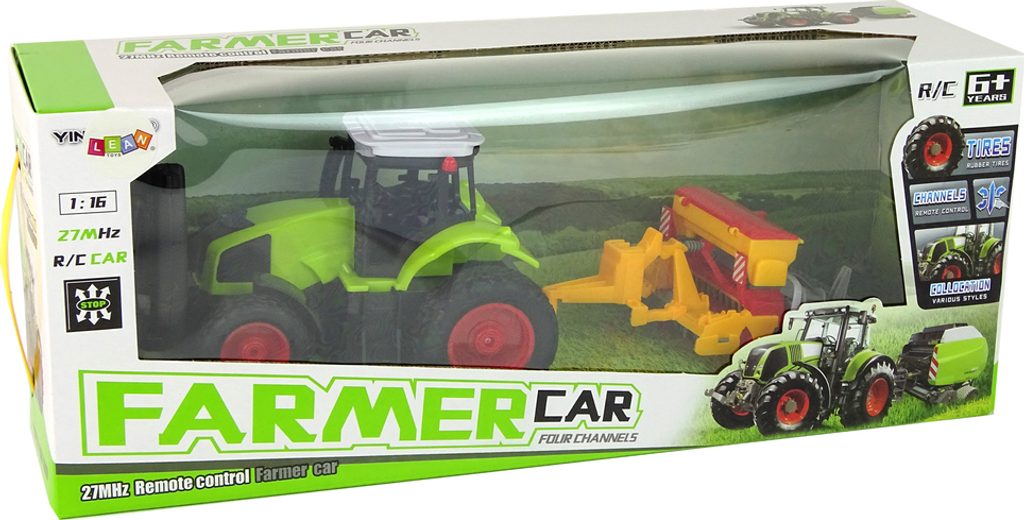Zelený traktor s gumovými pneumatikami je pro děti skvělou zábavou.Atraktivitu přidává pohyblivý lis a dálkové ovládání.Běží na 14500/800mAh 3,7V baterii s nabíječkou.Ideální dárek pro mladé fanoušky farmářství.