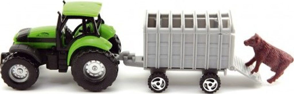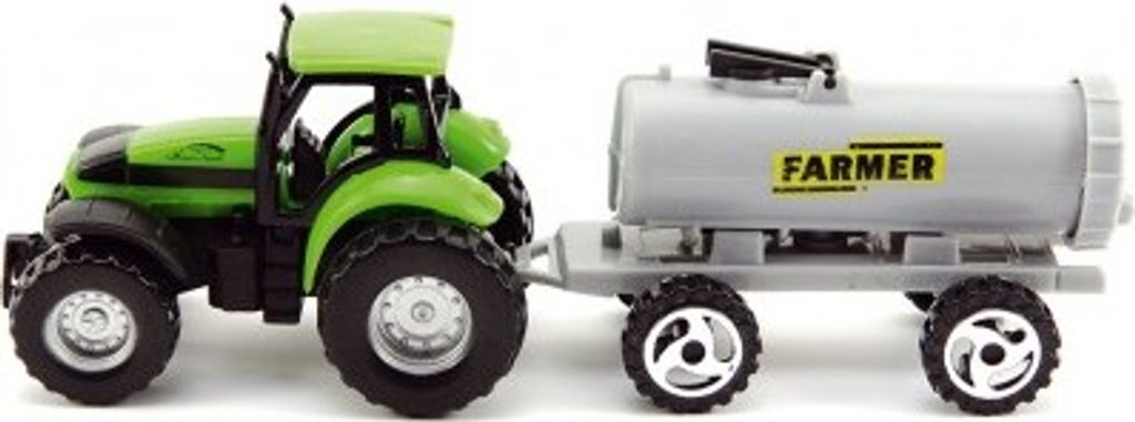 Rozšiřte svoji sbírku zemědělské techniky o tento plastový model traktoru s přívěsem.