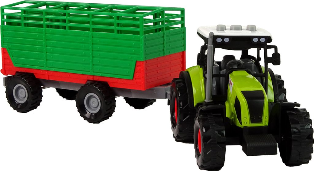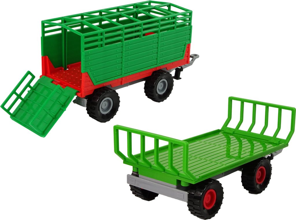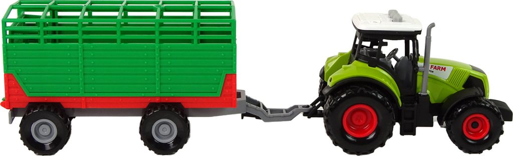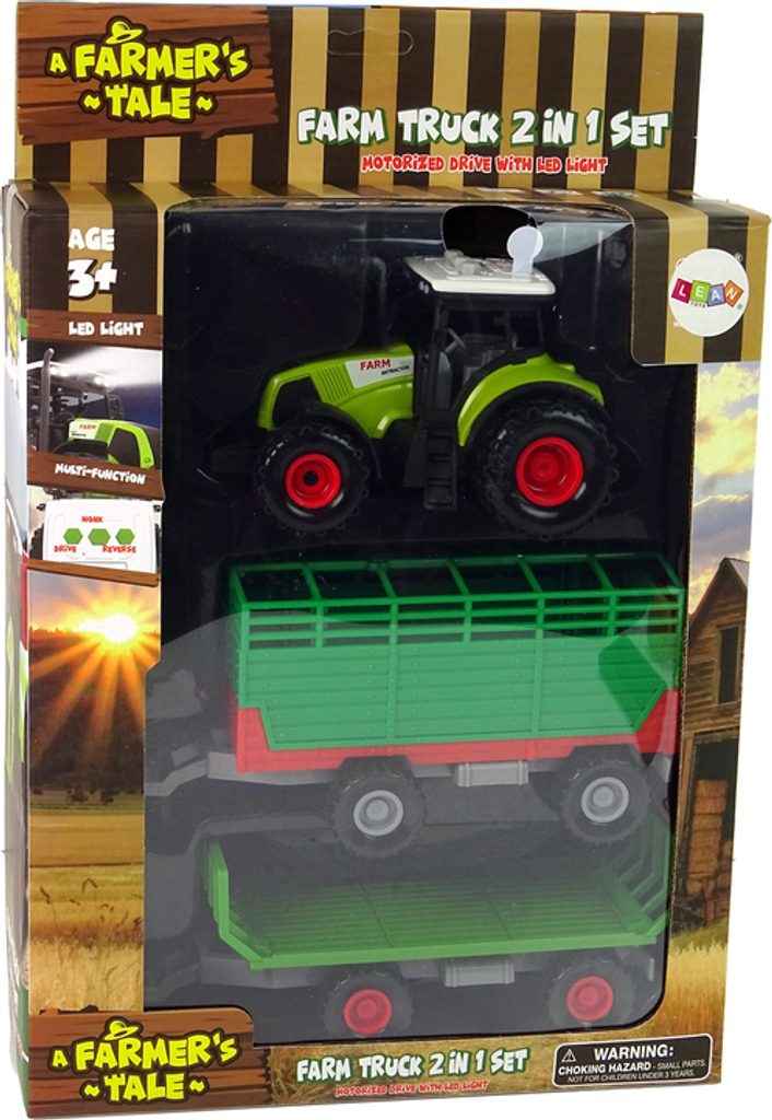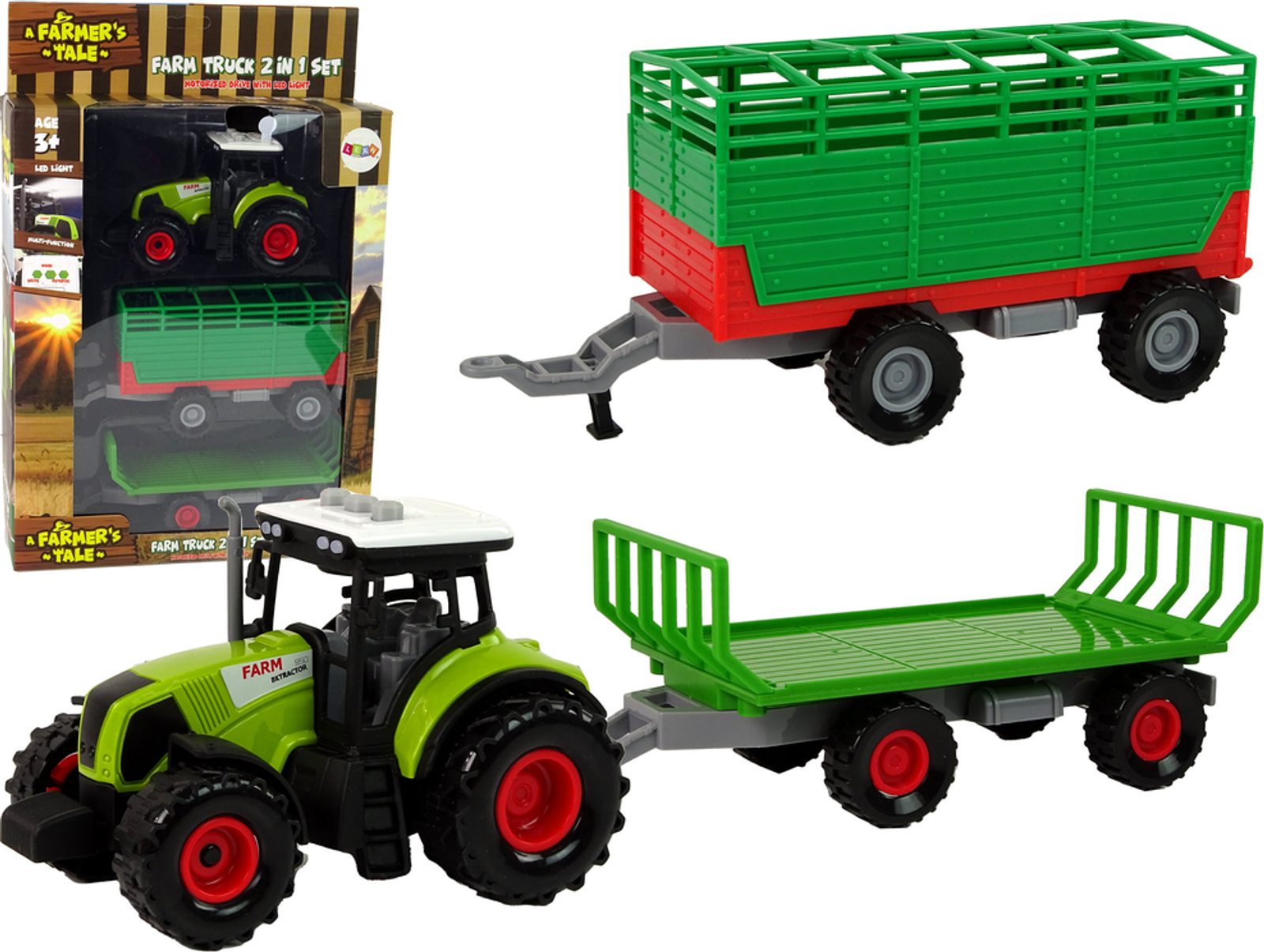 Sada obsahuje traktor a dva typy přívěsů, které zpestří zábavu dítěte. Samotný traktor má možnost jízdy a vydávání charakteristických zvuků.