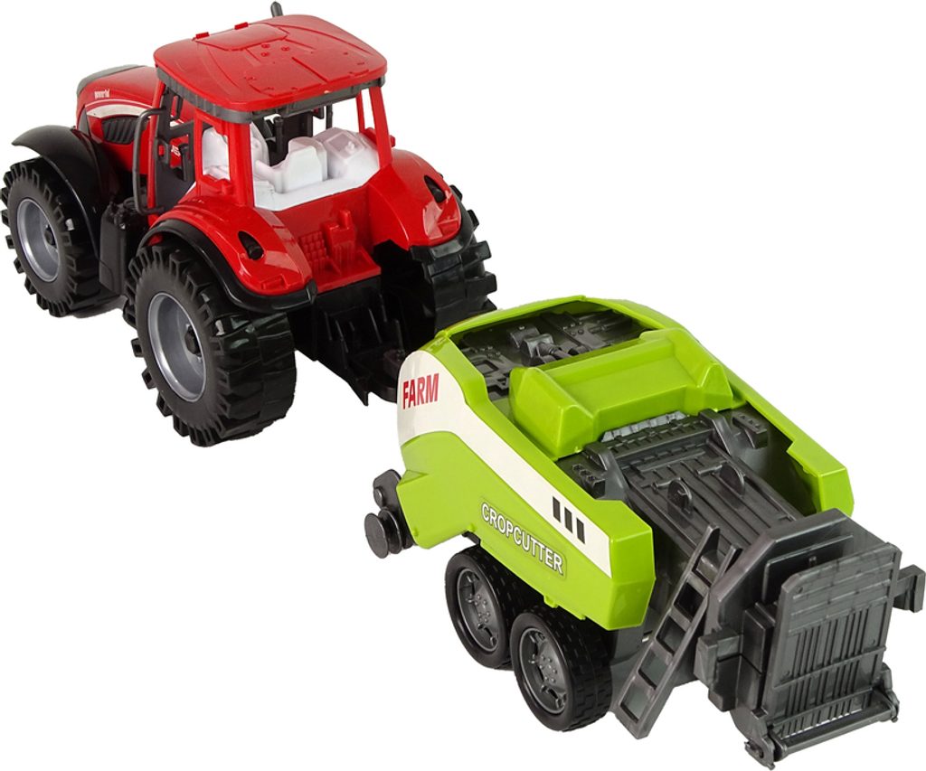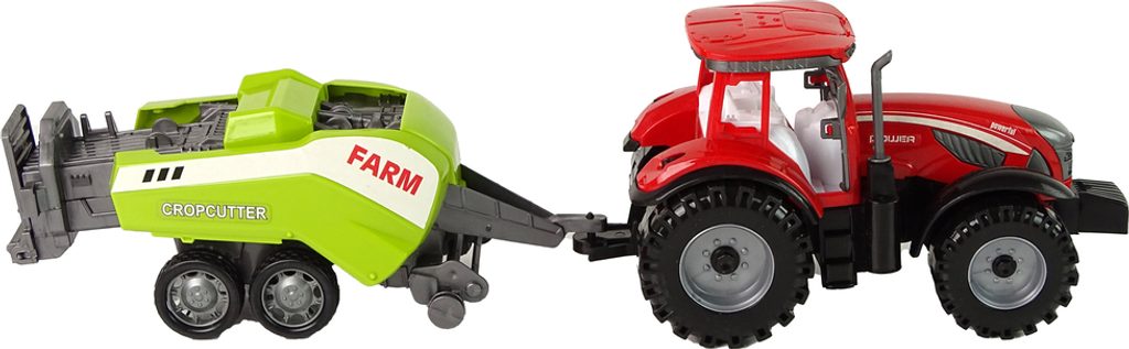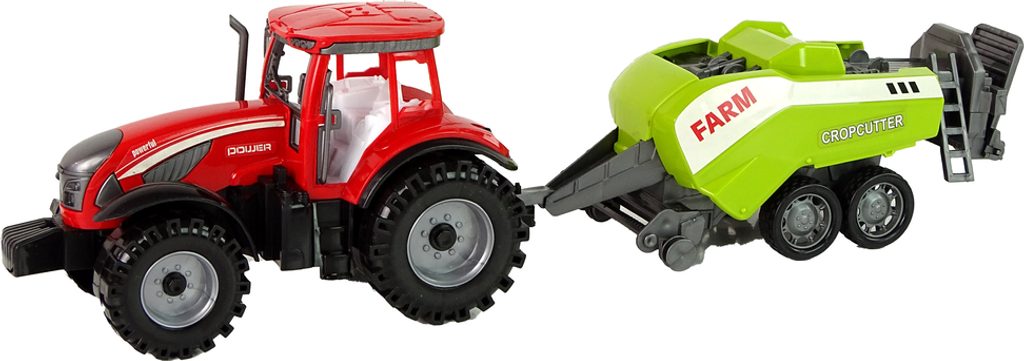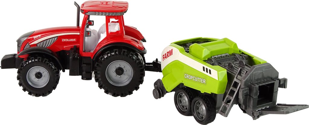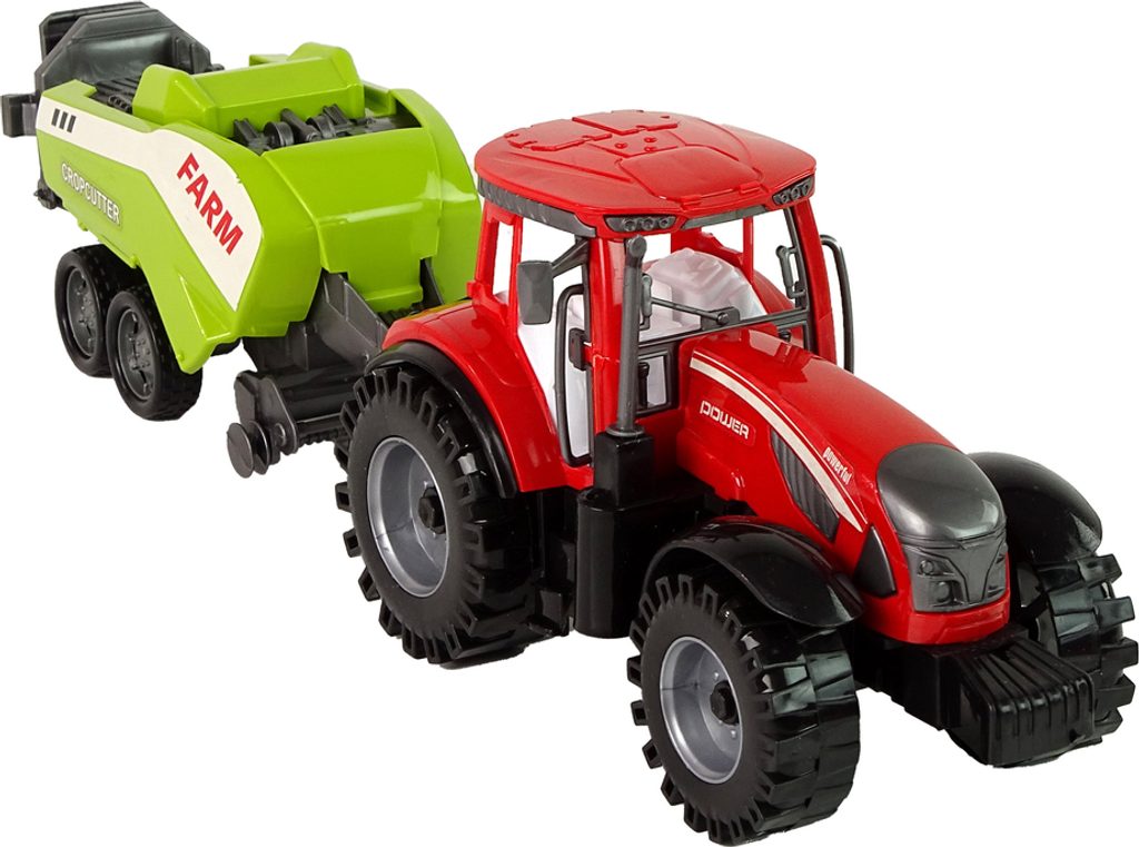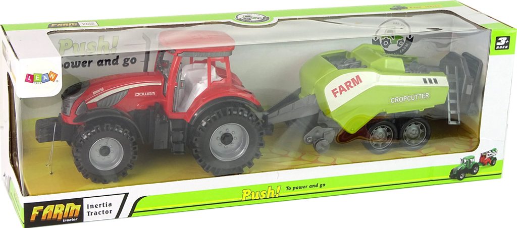 Červený farmářský traktor se zeleným secím strojem - farmářská hračka pro malé milovníky venkovského života. Autentické detaily, setrvačník, pohyblivé části. Umožňuje vám prozkoumat svět zemědělství a užít si vzrušující dobrodružství.