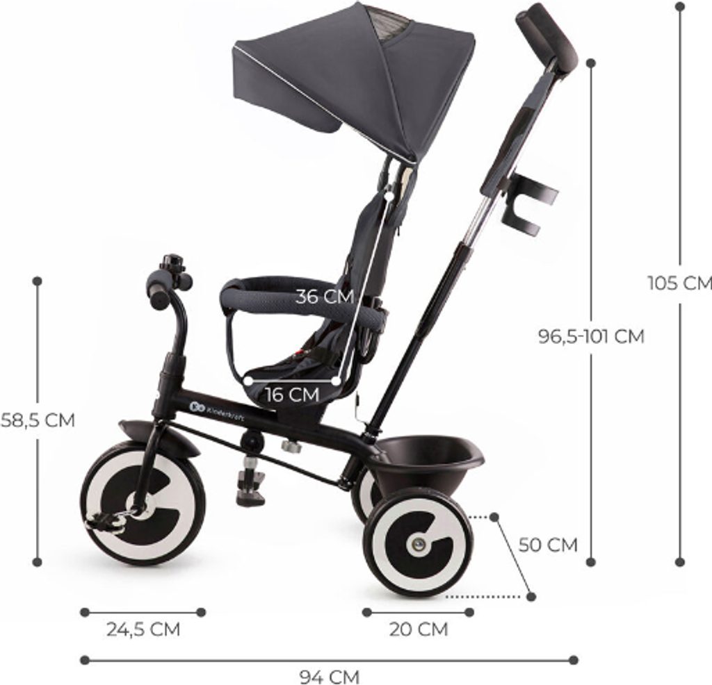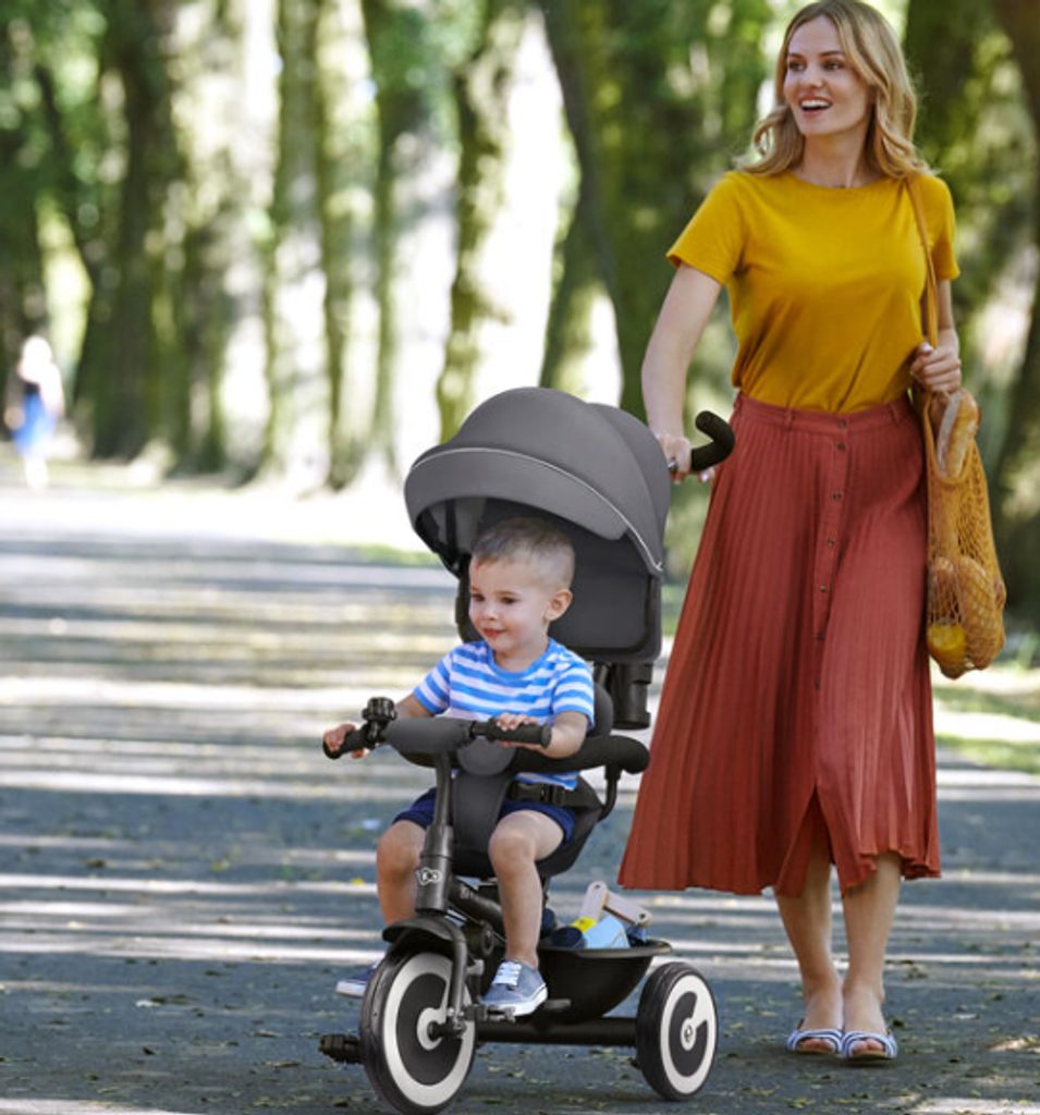 Až váš drobeček vyroste, snadno můžete sedačku otočit směrem ke světu. Nejprve budete moci ovládat rychlost a směr jízdy díky speciálním funkcím kola a později, když přijde čas na samostatnou jízdu, můžete dětské kolo nastavit tak, aby dítě jelo samo. S touto tříkolkou nebude žádná procházka nudná.