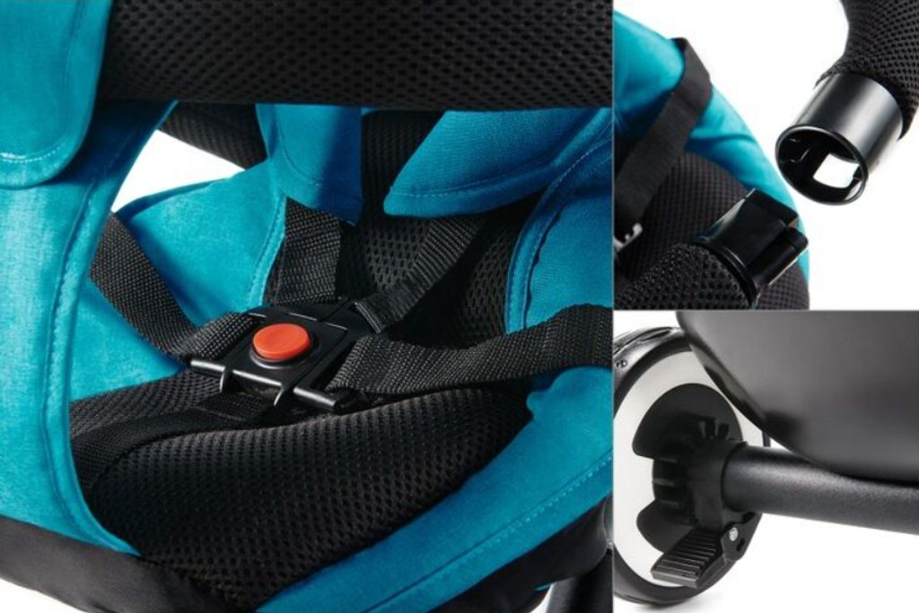 5bodové bezpečnostní pásy a přídavný pás mezi nožičkami udrží dítě v pohodlné poloze a ochrání ho před pádem z kola.