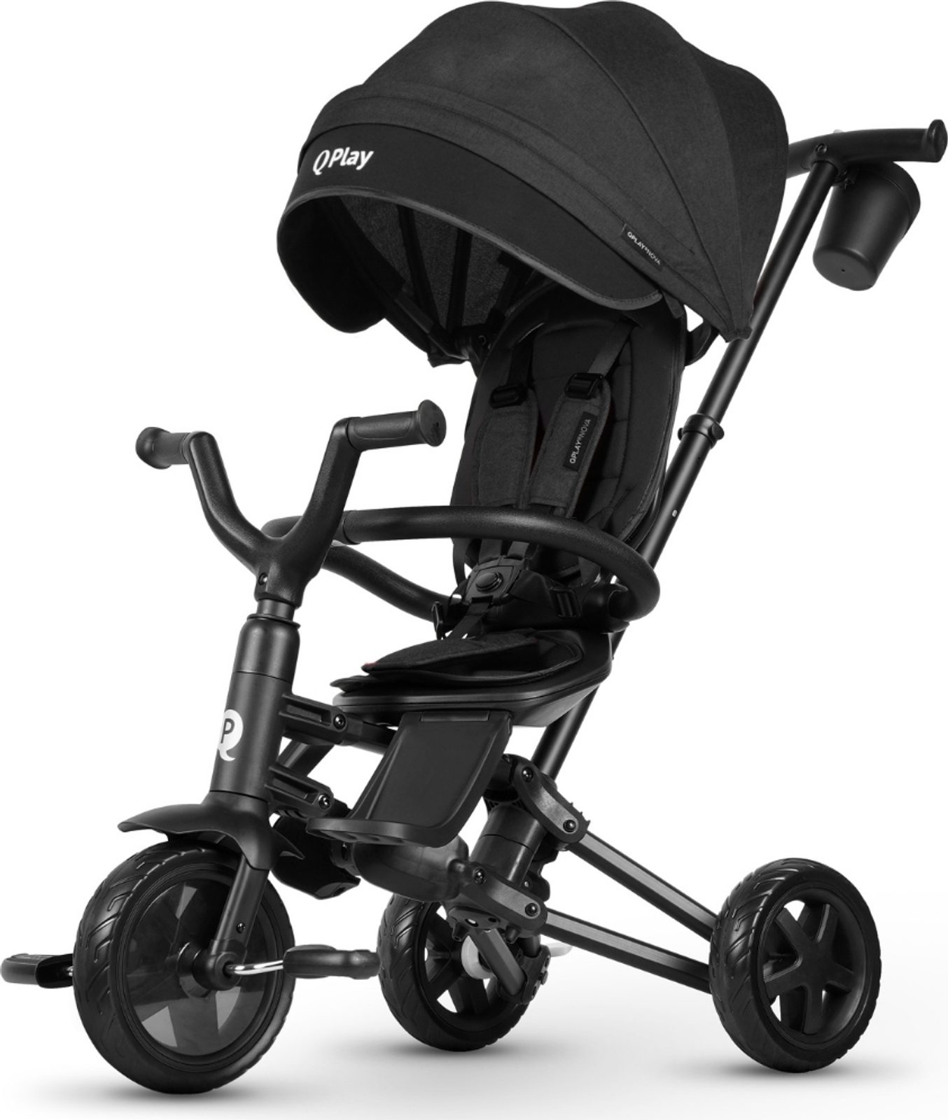 Tato tříkolka jistě uspokojí i ten nejnáročnější vkus, QPLAY využívá nejnovější trendy v barvách a pro zdůraznění designu jsou na kapotě a bezpečnostních pásech použity vložky s logem a jménem. To vše pro zvýšení jeho atraktivity. Tichá EVA kola zajišťují jízdní komfort. Volnoběžné kolo a volné řízení dávají rodiči kontrolu, aby klidně sledoval určenou trasu. Kombinace hliníkové konstrukce a prvků z vysoce kvalitních materiálů zaručuje odolnost.