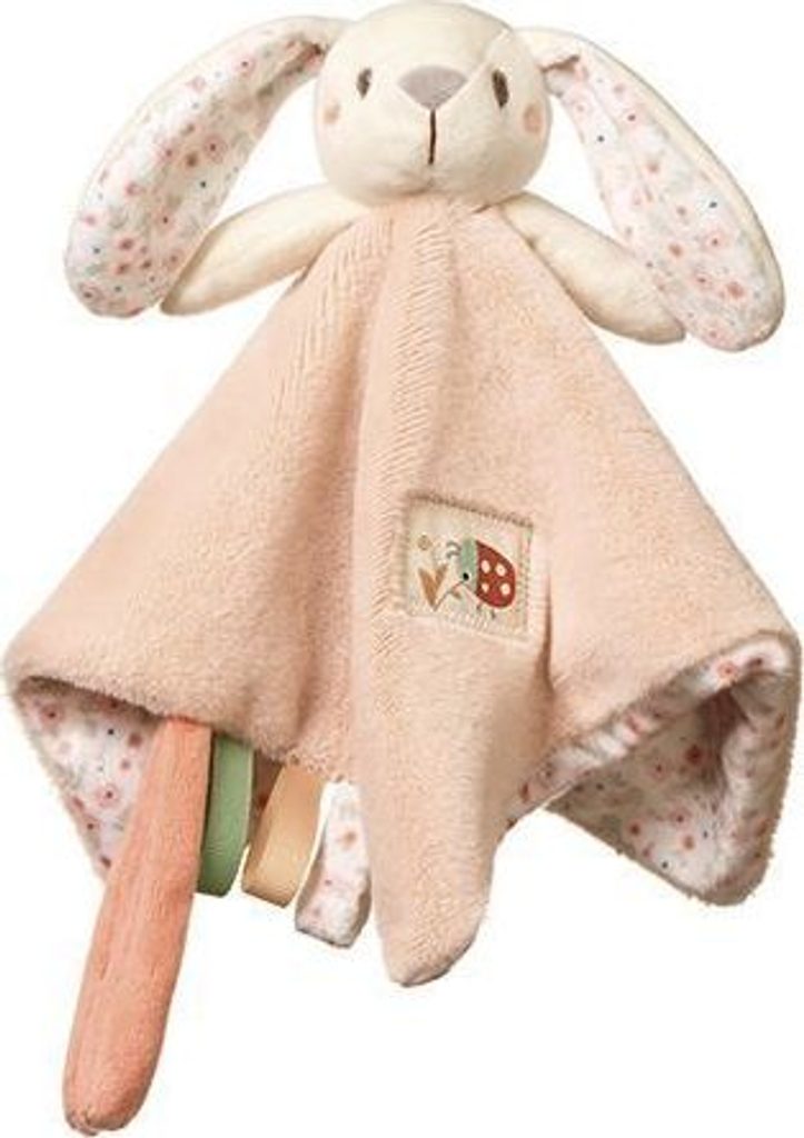 Tento roztomilý usínáček Zajíček kombinuje deku a plyšovou hračku. Zvyšuje pocit bezpečí – batole má svou oblíbenou hračku vždy na dosah. Stimuluje smysly dítěte. Dlouhé králičí uši a barevné uzly pomáhají rozvíjet obratnost. Malí je také rádi popadnou kvůli různým poutavým barvám a vzorům. Plyšák má tiché chrastítko. Jemně stimuluje sluch dítěte a vzbuzuje jeho zájem. Plyšový materiál deky je velmi jemný na dotek.