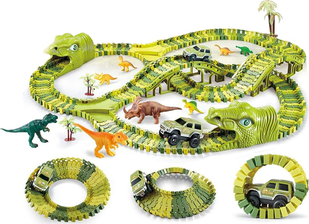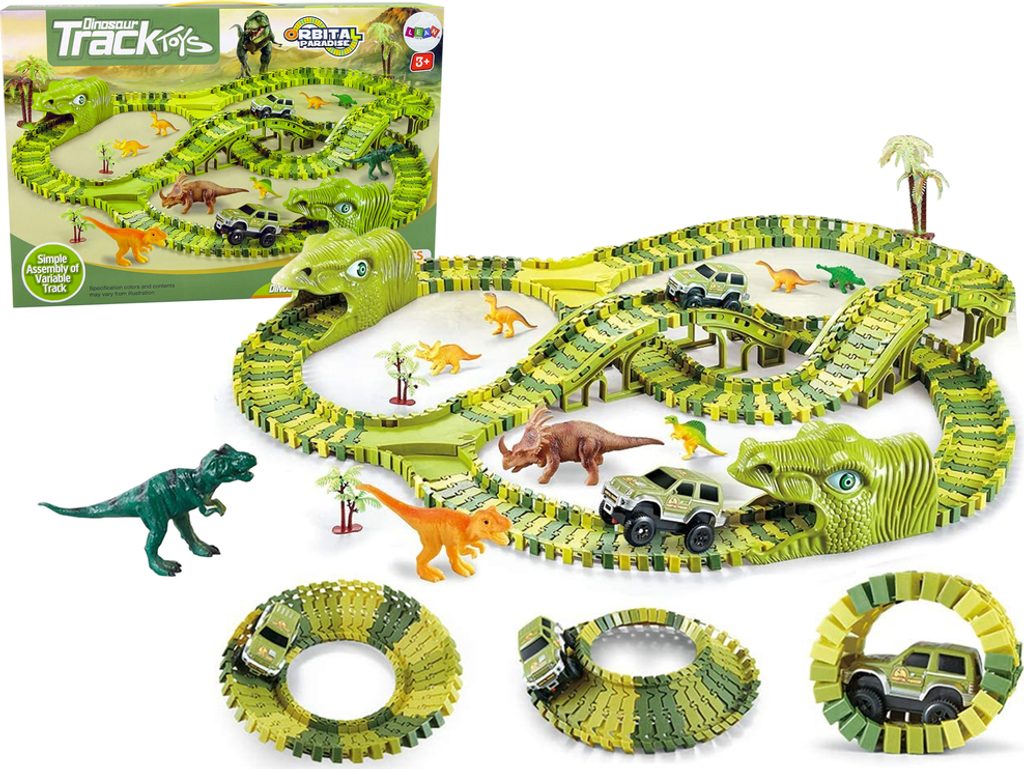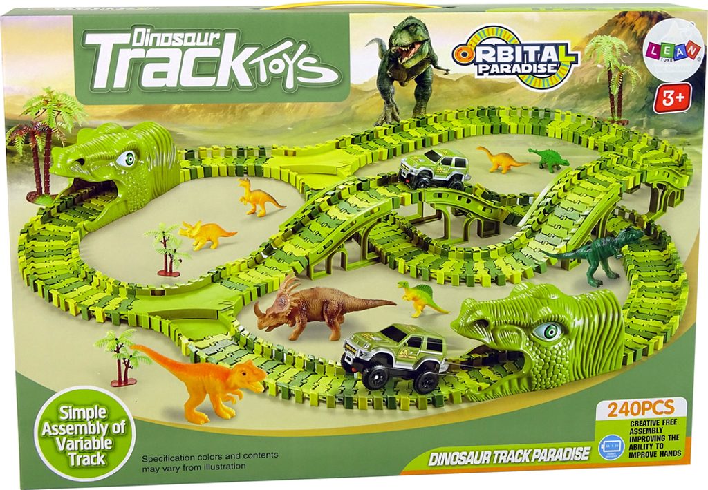 Vlastní dinopark s dráhou a překážkami je něco pro malého fanouška těchto pravěkých zvířat. Kombinací je mnoho, stačí zapojit fantazii a vytvořit místo pro pravěká zvířata! S jízdou na této trati bude spokojený každý malý fanoušek závodění, díky pružnosti trati má auto lepší přilnavost. Stavením si dítě procvičuje manuální zručnost a představivost při dlouhé hře.